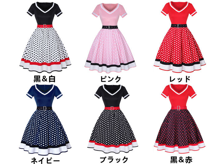 スイングワンピ レトロワンピース レデ レディースファッション 超目玉商品 黒&白 ピンク レッド ネイビー ブラック 黒&赤 S M L XL 2XL 3XL 4XL