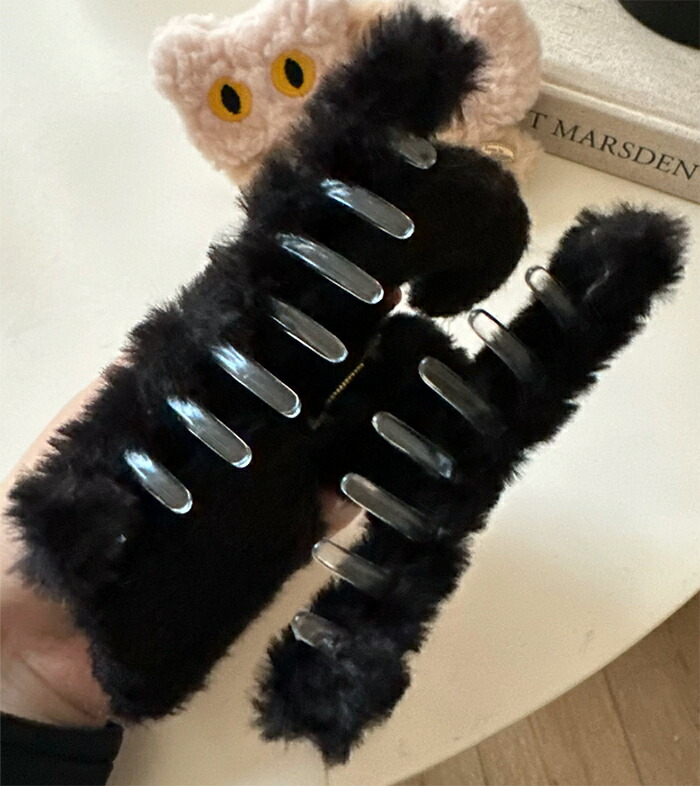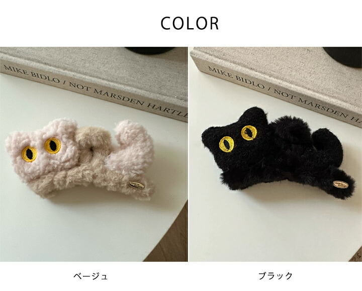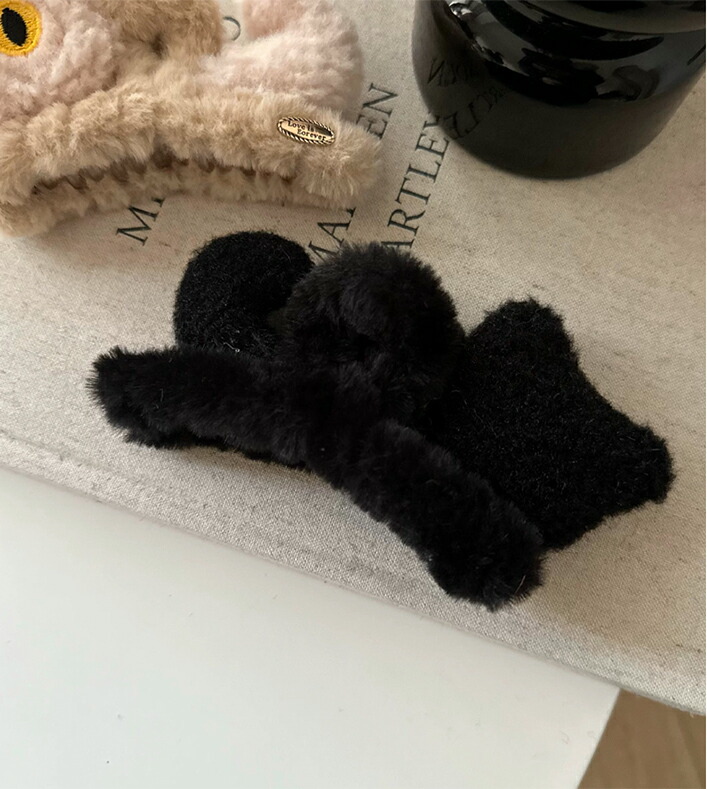 可愛い猫型バンスクリップ モコモコ 2 レディースジュエリー アクセサリー ヘアアクセサリー ヘアクリップ 人気 ベージュ ブラック