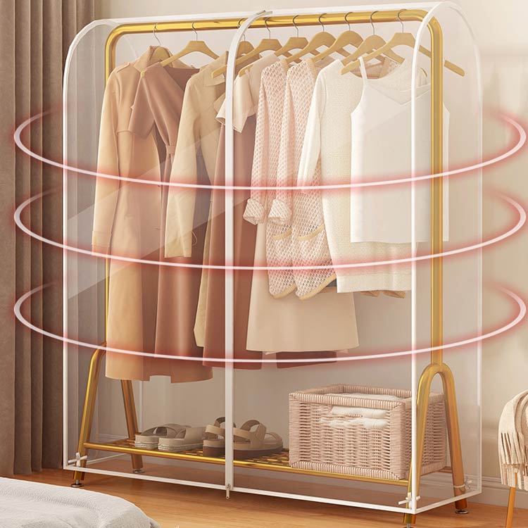 270°すっぽりカバー ハンガーラック 洋服カバー カバー 通気性 パイプハンガーカバー 衣類カバー 透明 クリア 防塵 防カビ ファスナー開閉式 ダブル コートカバー ドレスカバー 洋 中身見やすい