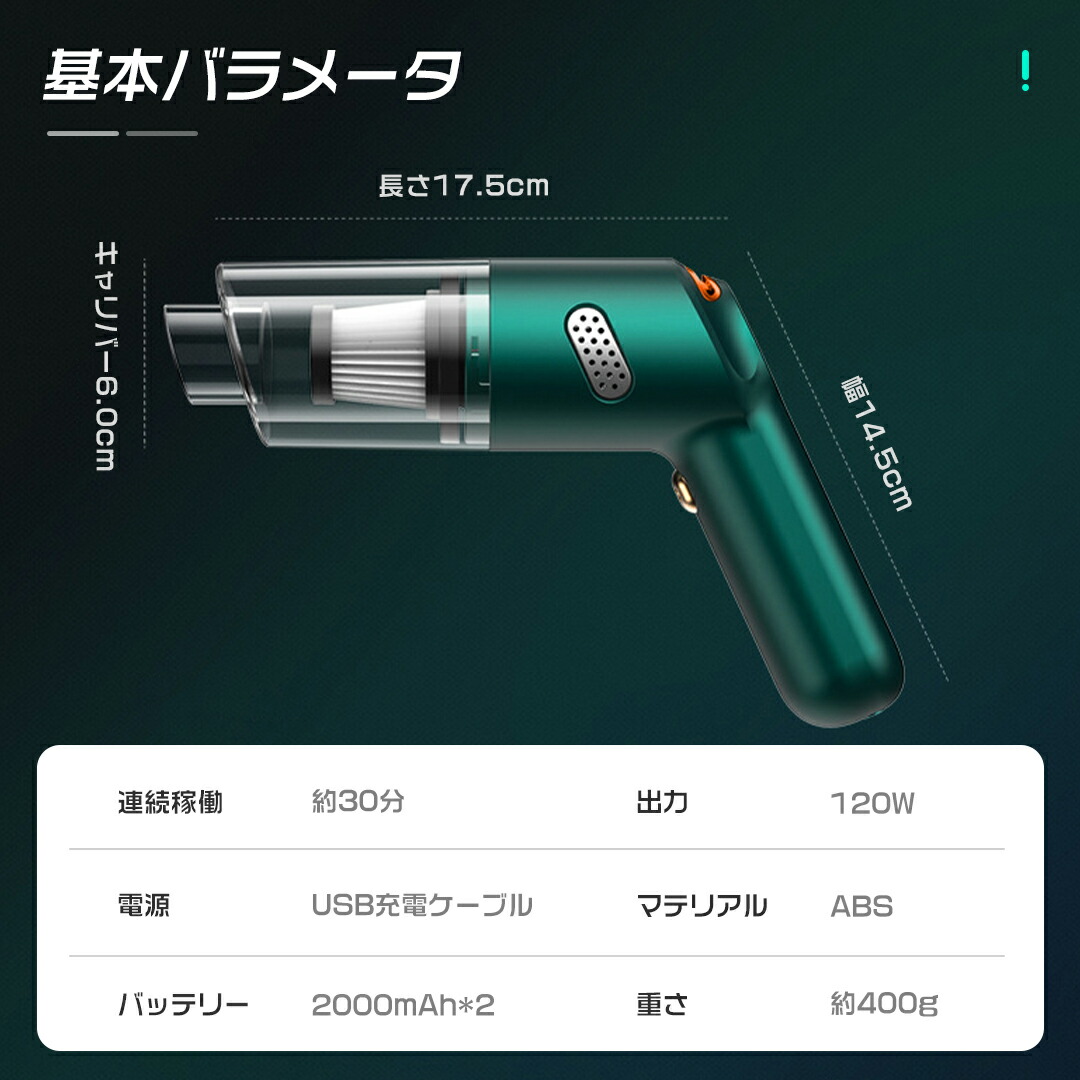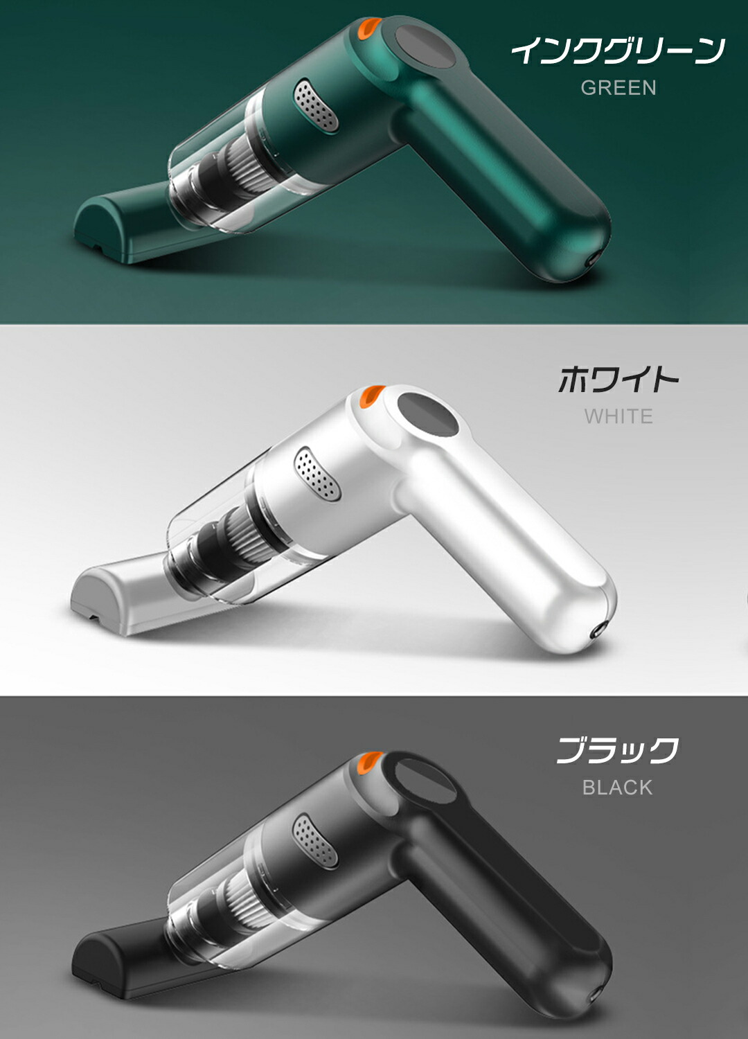 車載掃除機 ハンディクリーナー 車掃除 グリーン ホワイト ブラック