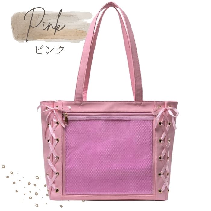 推し活バッグ 透明 大きめ リボン 大容量 トート 痛バ 痛バッグ レザー 推しバッグ 痛バック A4 革 レースアップ トートバッグ 推しごと