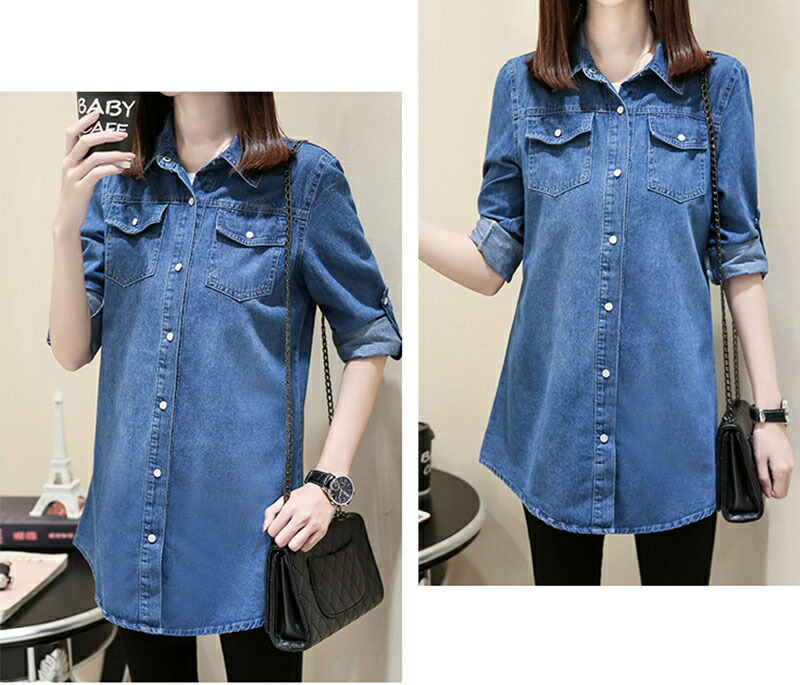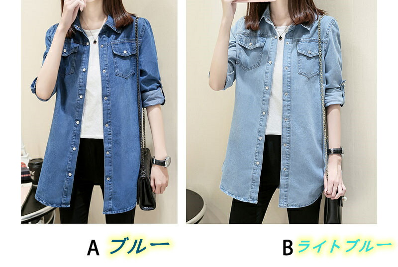 デニム シャツ レディース チュニック チュニック 早い者勝ち A(ブルー) B(ライトブルー) S M L XL 2XL 3XL