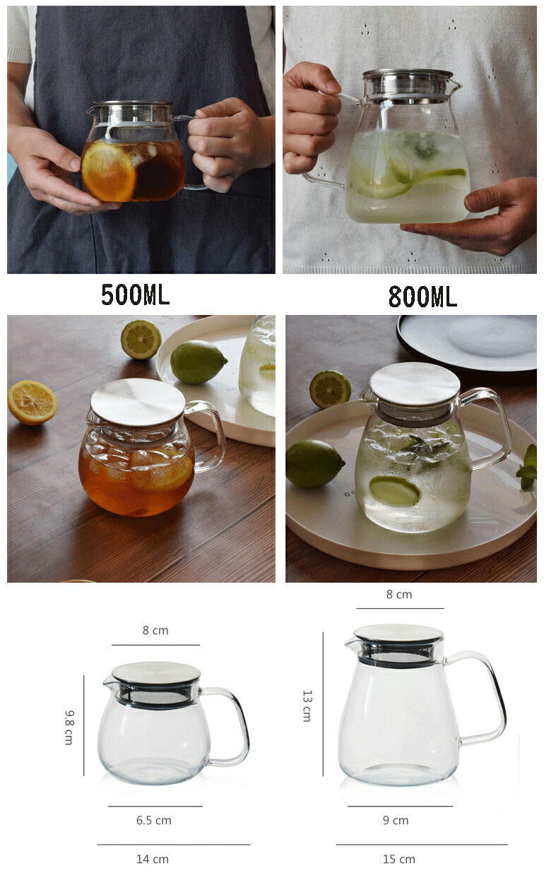 耐熱ガラス ティーポット ステンレス蓋 キッチン用品 食器 調理器具 豊富 500ml 800ml