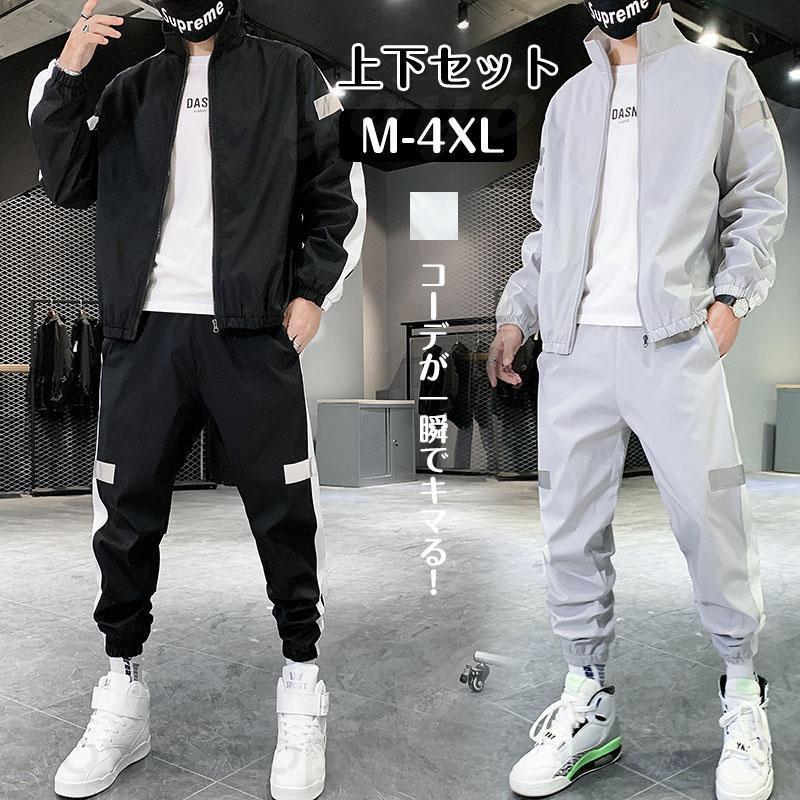 セットアップ メンズ 長袖 大きいサイ スポーツウェア アクセサリー ジャージ メンズジャージ セットアップ 特集 人気ホワイト ブラック ライトグレー M L XL 2XL 3XL 4XL
