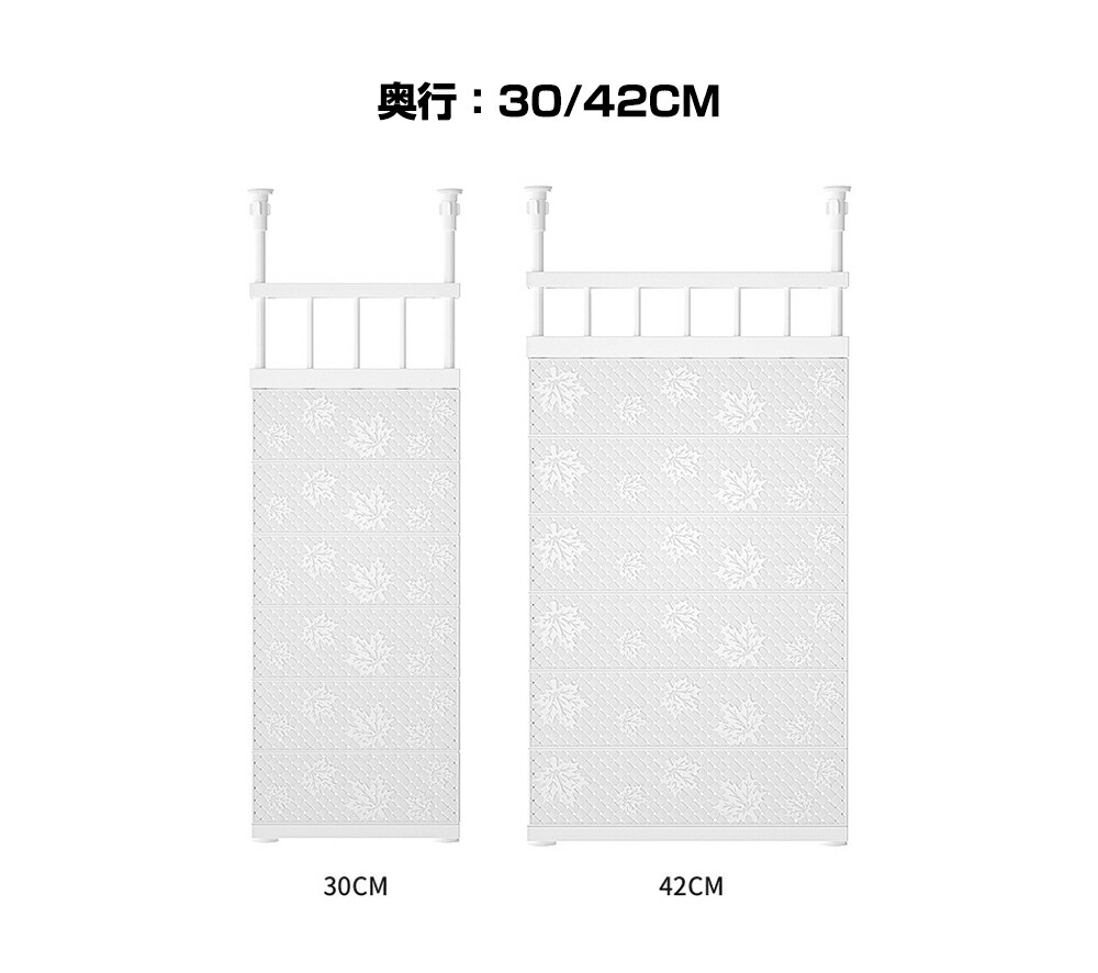 【段差のある壁に対応する】奥行30cm 42cm、沢山な物が載せられるワイドタイプで、スリムな突っ張り棚より収納スペースが広がります。ボールが自由に伸縮できるので、段差のある壁にも取り付けられます。取り付けた後でも棚のスライド部分が自由に調整できます。使用しない時に取り外すことも可能です。
