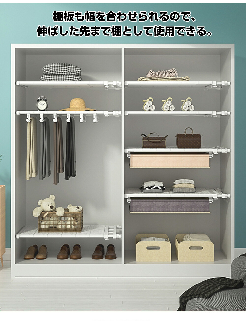 突っ張り棚 突っ張り棒 ランドリーラック 丈夫 ホワイト 白 棚 すきま収納 クローゼット 押入れ 洗面所 洗濯機 トイレ 洋服 シューズ スペース活用 ワイド 工具不要 簡単設置 賃貸 隙間