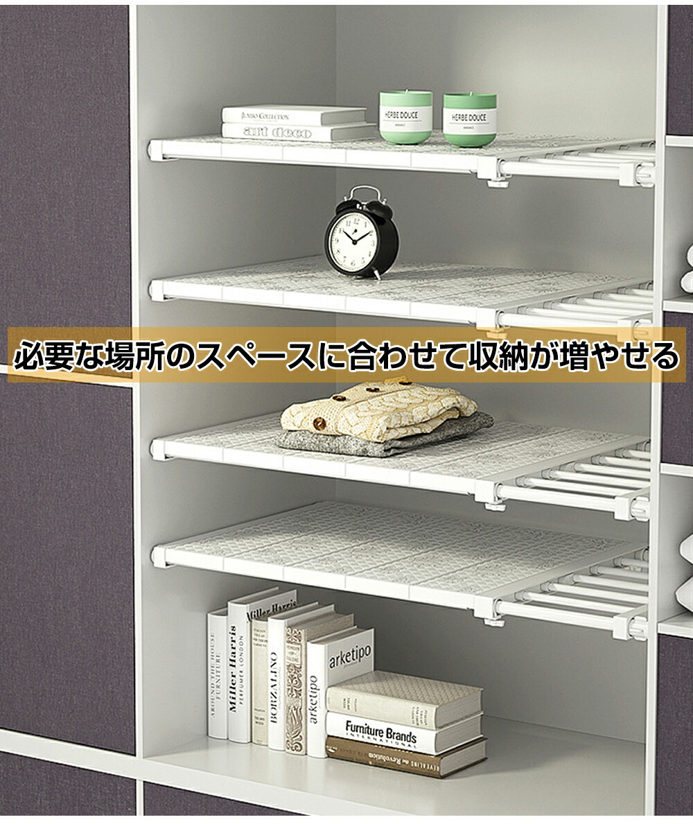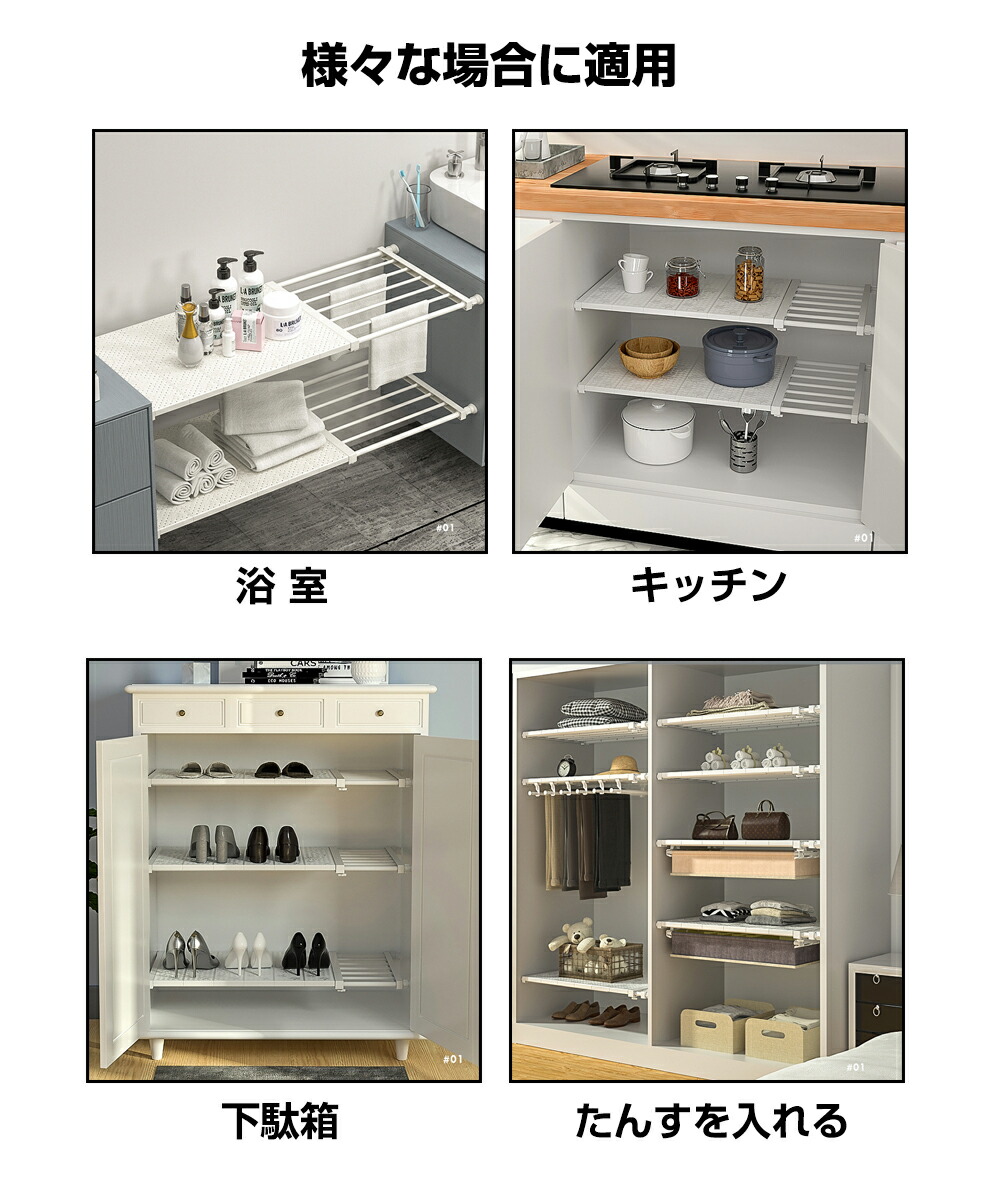 【多機能伸縮棚】すき間、玄関、浴室、キッチンなど場所に設置するとすっきり片付きます。クローゼット、シューズラック、収納棚、本棚、食器棚として使えます。立てて突っ張れば傘などが掛けられます。猫と小型犬を逃亡防止に利用できるだけでなく、お子さんの安全や防犯用柵代わります。