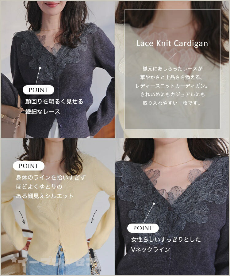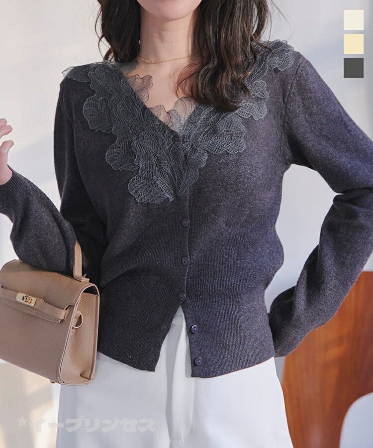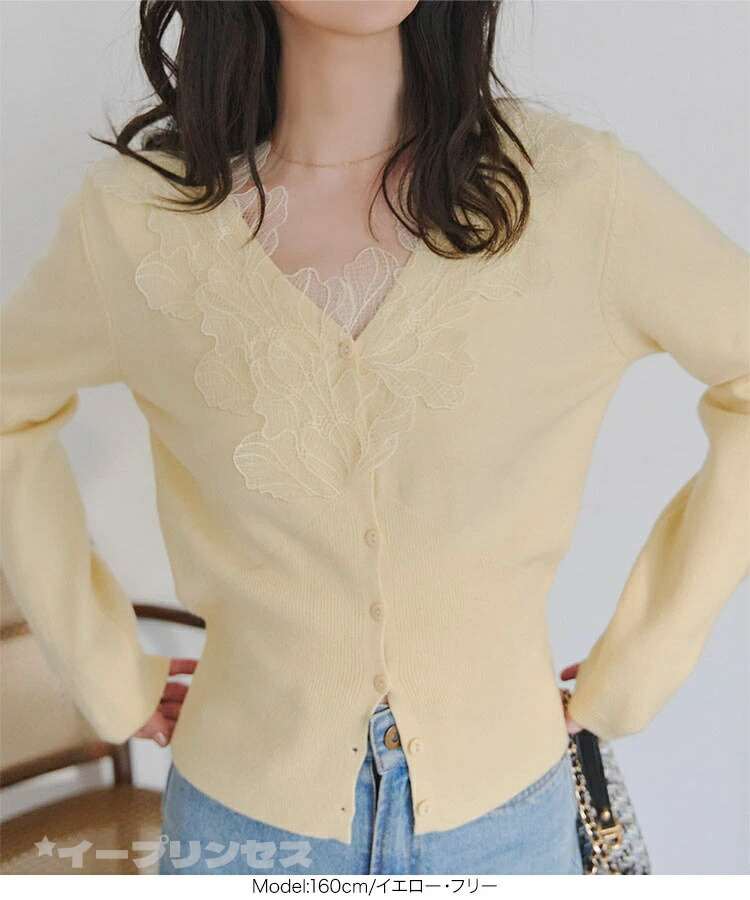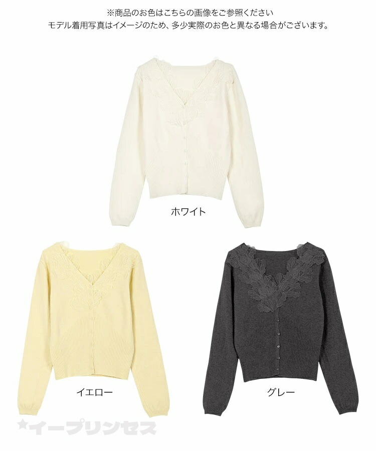 ニット カーディガン 襟レース ニット トップス ニット セーター その他 人気 ホワイト イエロー グレー