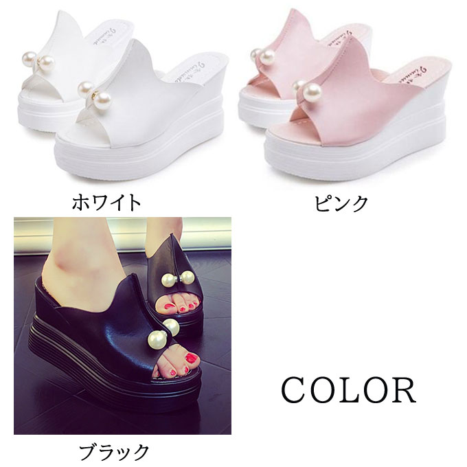 ウェッジソールサンダル オープントゥ トングサンダル レディース ビーサン 厚底 ミュール ハイヒール 夏新作 真珠付き