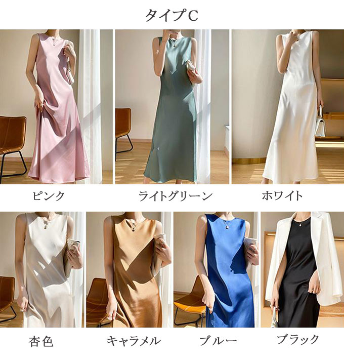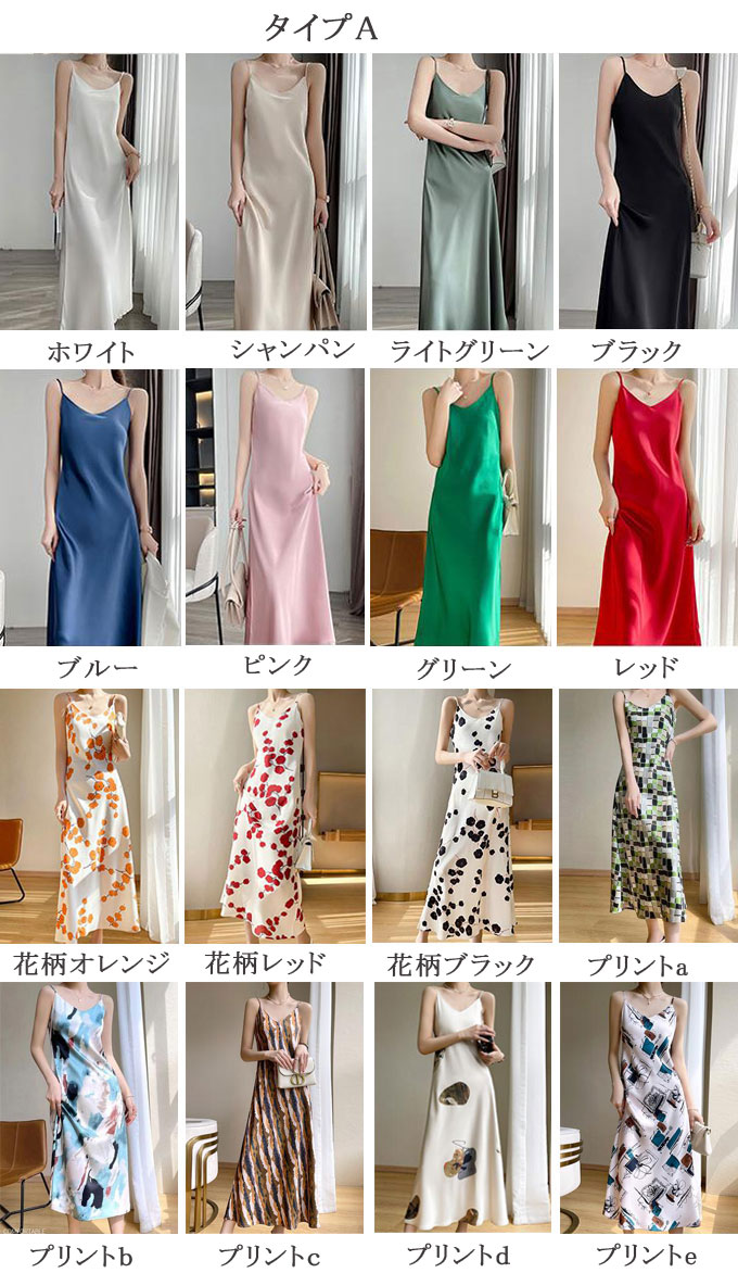 キャミソール ワンピース シルク レディース サテン風 インナーワンピース 吊りスカート Aライン ノースリーブ ノースリーブワンピ Vネック 無地 ロング丈 マキシワンピース ペチ 花柄