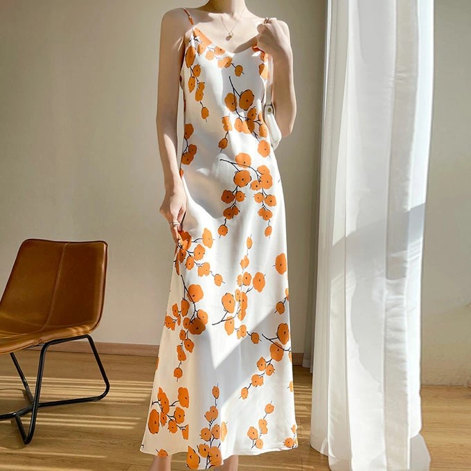 年代問わず可愛く着られるシルクキャミソールワンピースです。