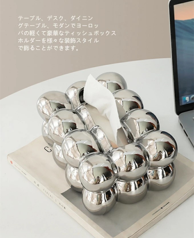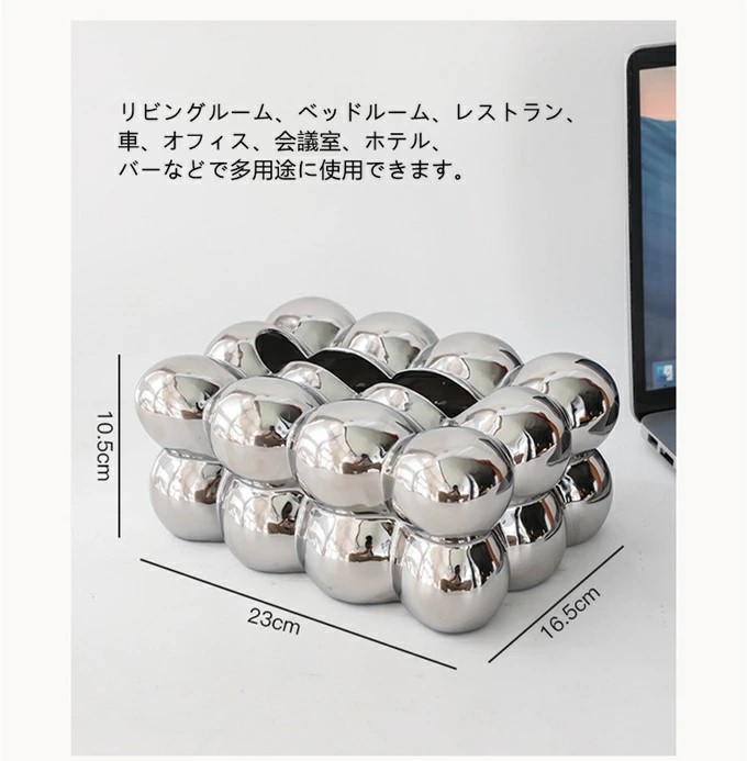 卵形ティッシュボックスカバー 収納ボッ オフホワイト シルバー グリーン