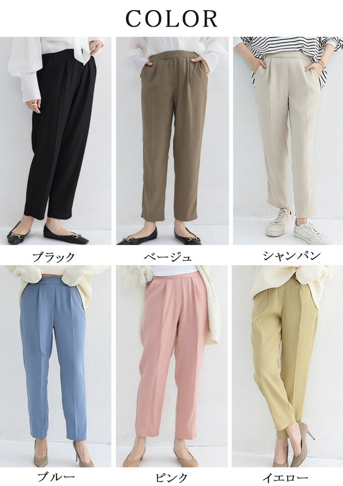 テーパードパンツ レディース きれいめ ボトムス パンツ 続々登場 ブラック ピンク ベージュ イエロー ブルー シャンパン S M L