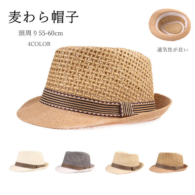 帽子 メンズ ハット 麦わら帽子 メッシュ 通気性が良い ぼうし カジュアル 中折れ 無地 きれいめ UVカット 日焼け防止 日よけ帽子 大きめ 男性用 お父さん 春 夏 ファッション 紳士