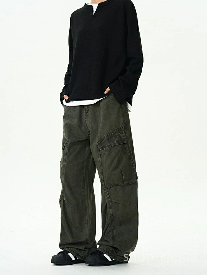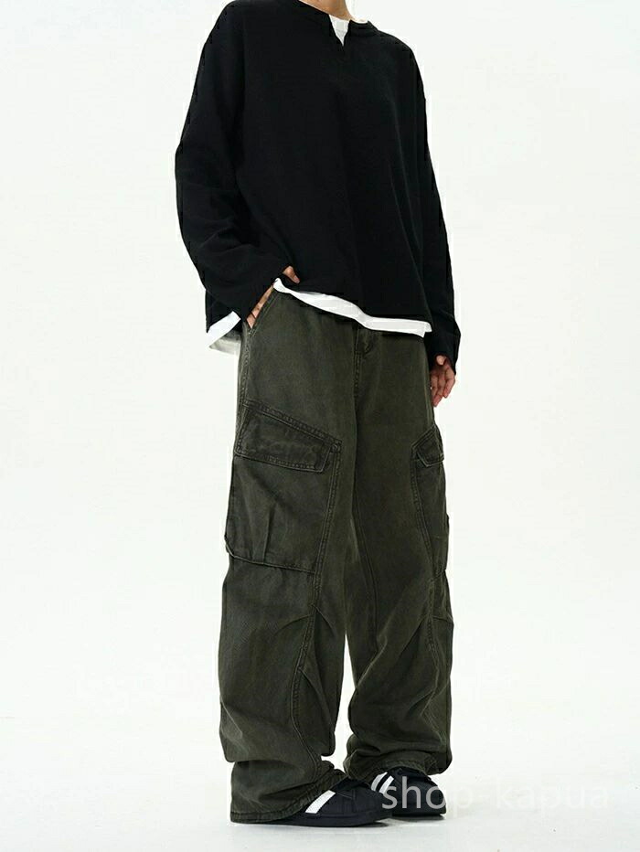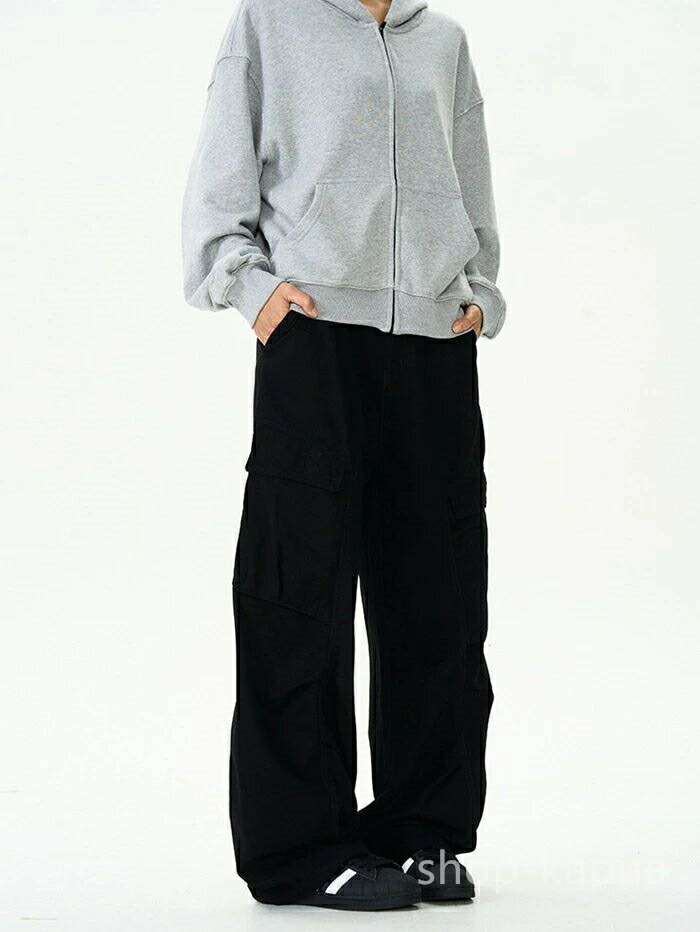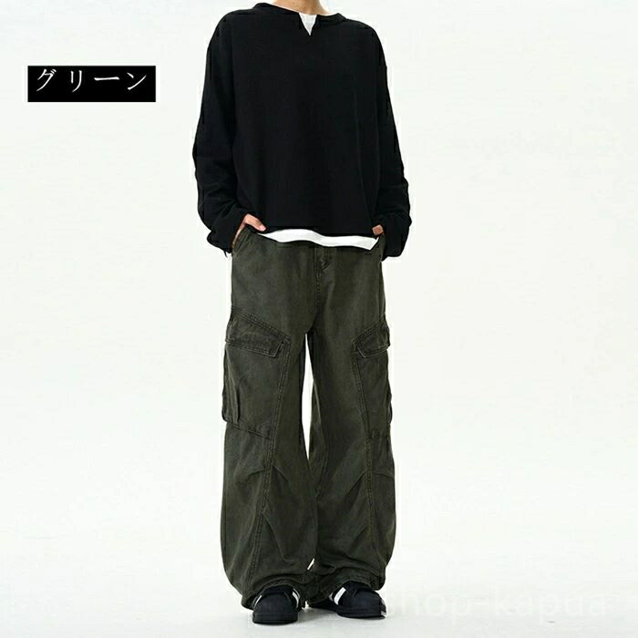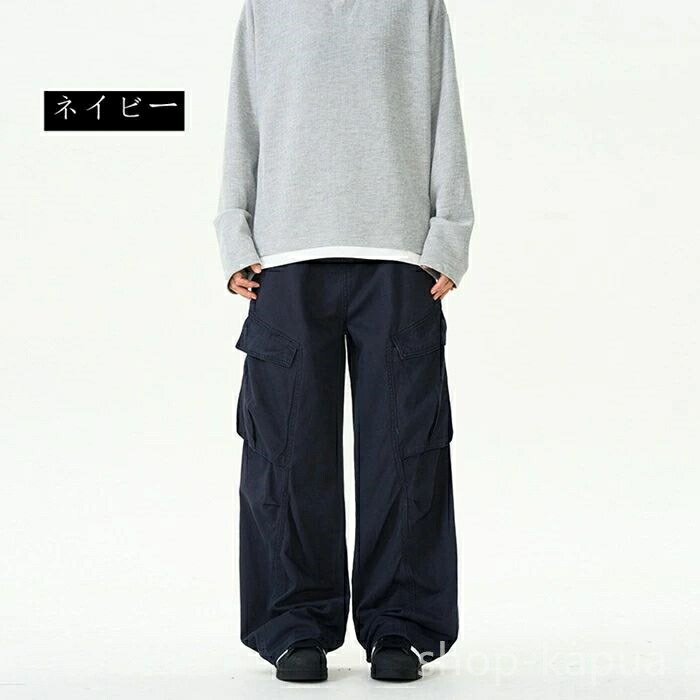 ワイドカーゴパンツ イージーパンツ ワ メンズファッション 続々登場 ネイビー ブラック グリーン グレー S M L XL 2XL 3XL