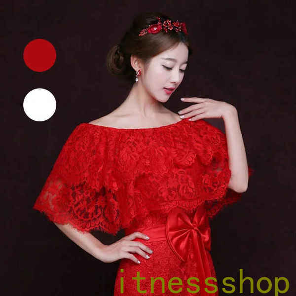 新生活 ボレロ 結婚式 ショール ウェ レディースファッション 早い者勝ち レッド ホワイト