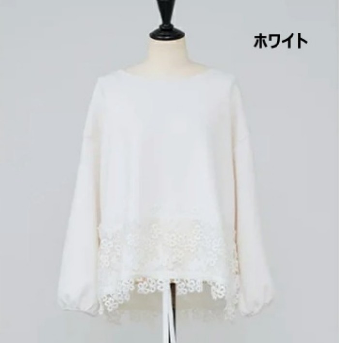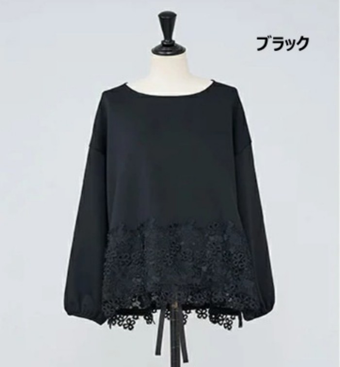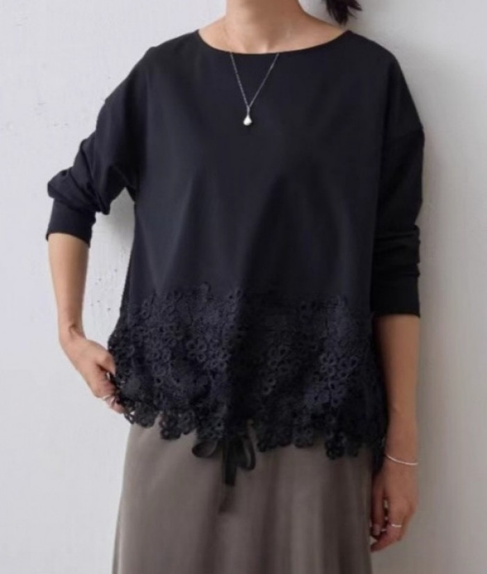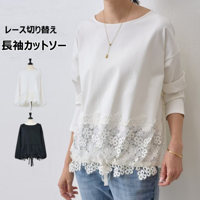 レディースカットソー 長袖 裾レース切 トップス Tシャツ カットソー 特集 ホワイト ブラック M L XL 2XL 3XL