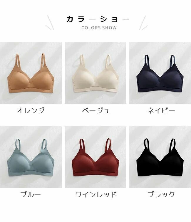 シ ノンワイヤーブラ シームレスブラ レディース インナー 下着 ブラジャー 通販 オレンジ ベージュ ネイビー ブルー ワインレッド ブラック S M L XL