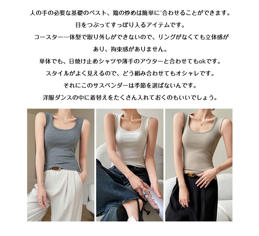 キャミソール綿 袖なし タンクトップ トップス キャミソール 特集 ブラック ホワイト ダークグレー グレー ベージュ S(35-47kg) M(47-57kg) L(57-67kg) XL(67-75kg)