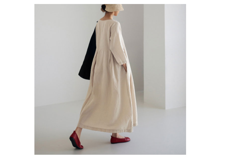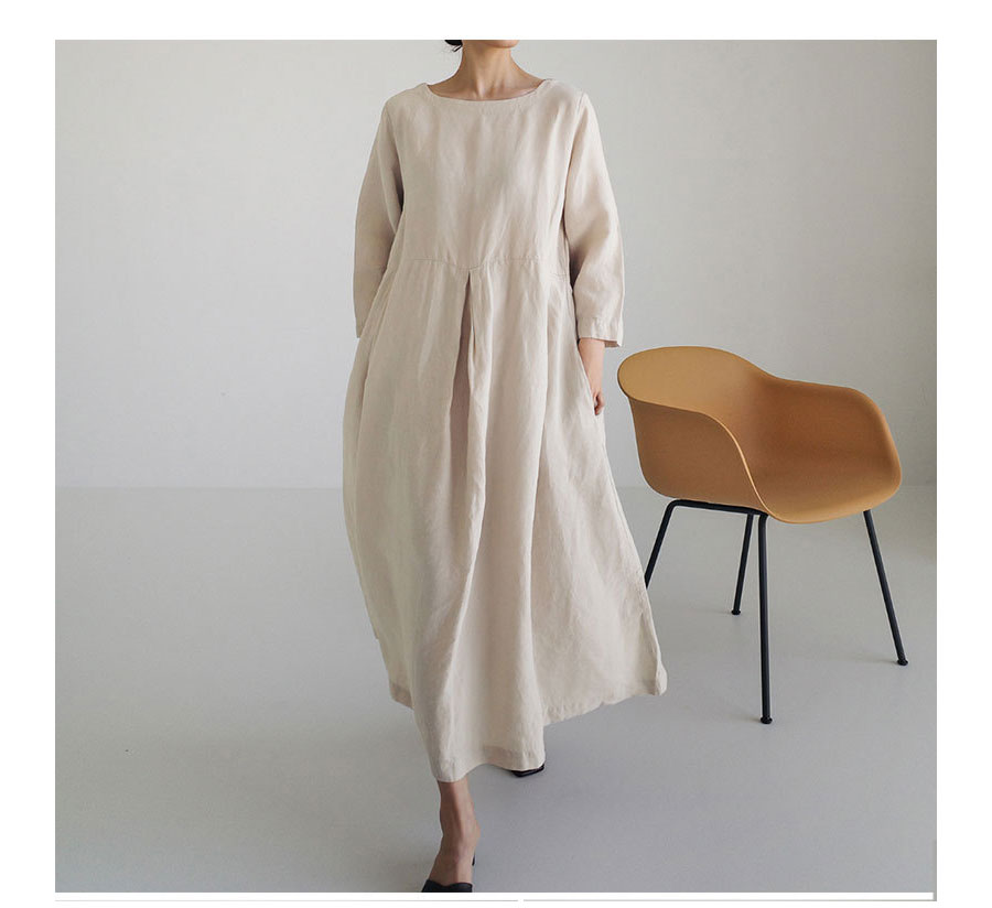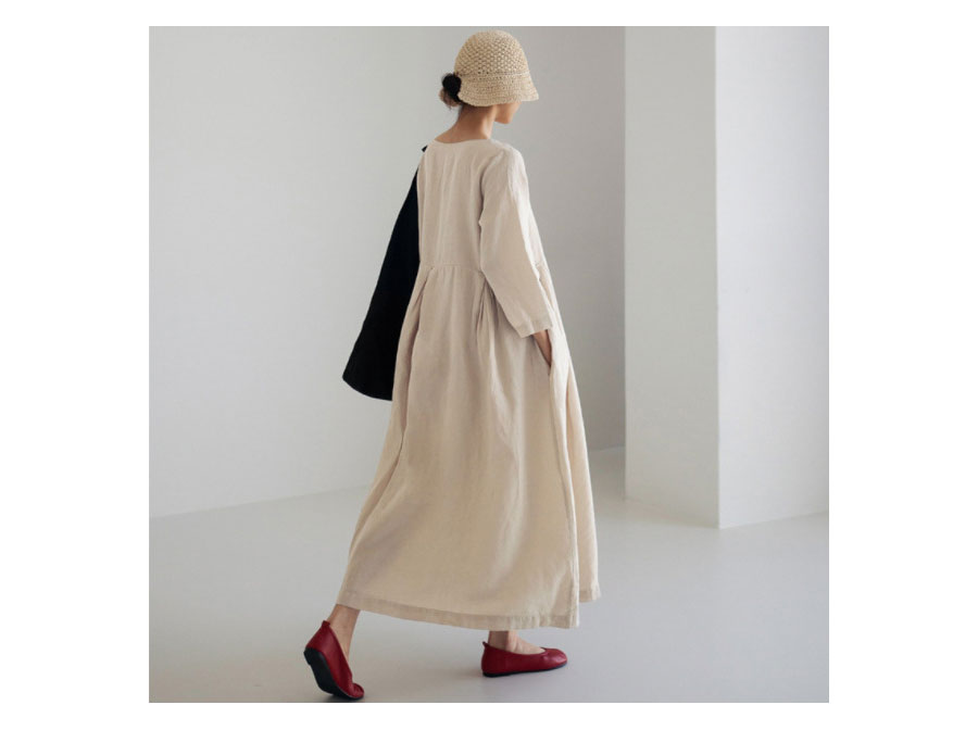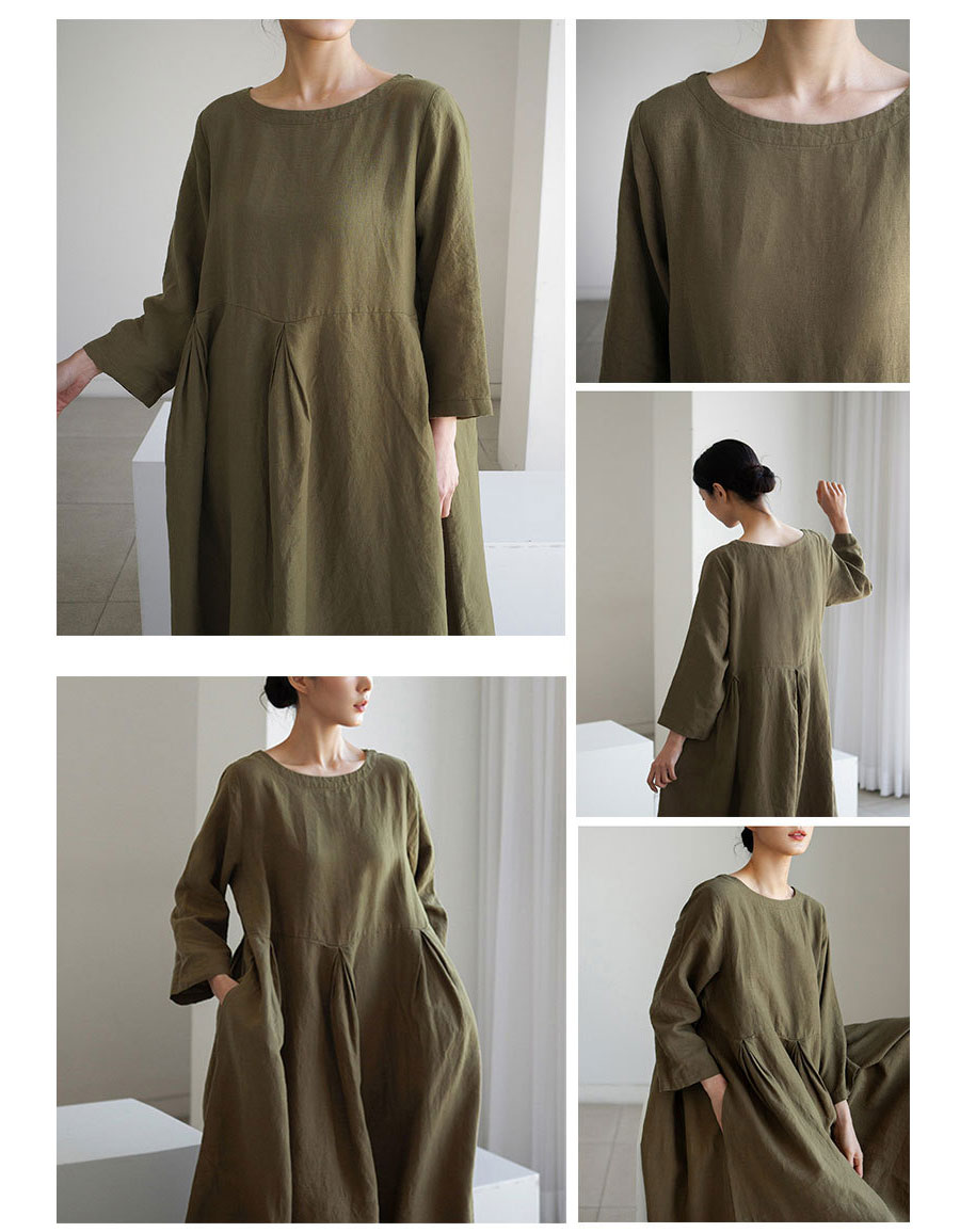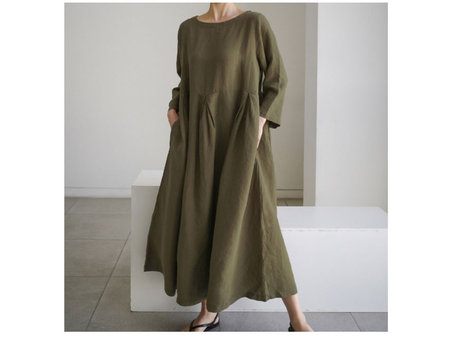 ワンピース フレンチ スリーブ ロング ワンピース 続々登場 ブラック ベージュ グリーン イエロー 紺色 S M L XL