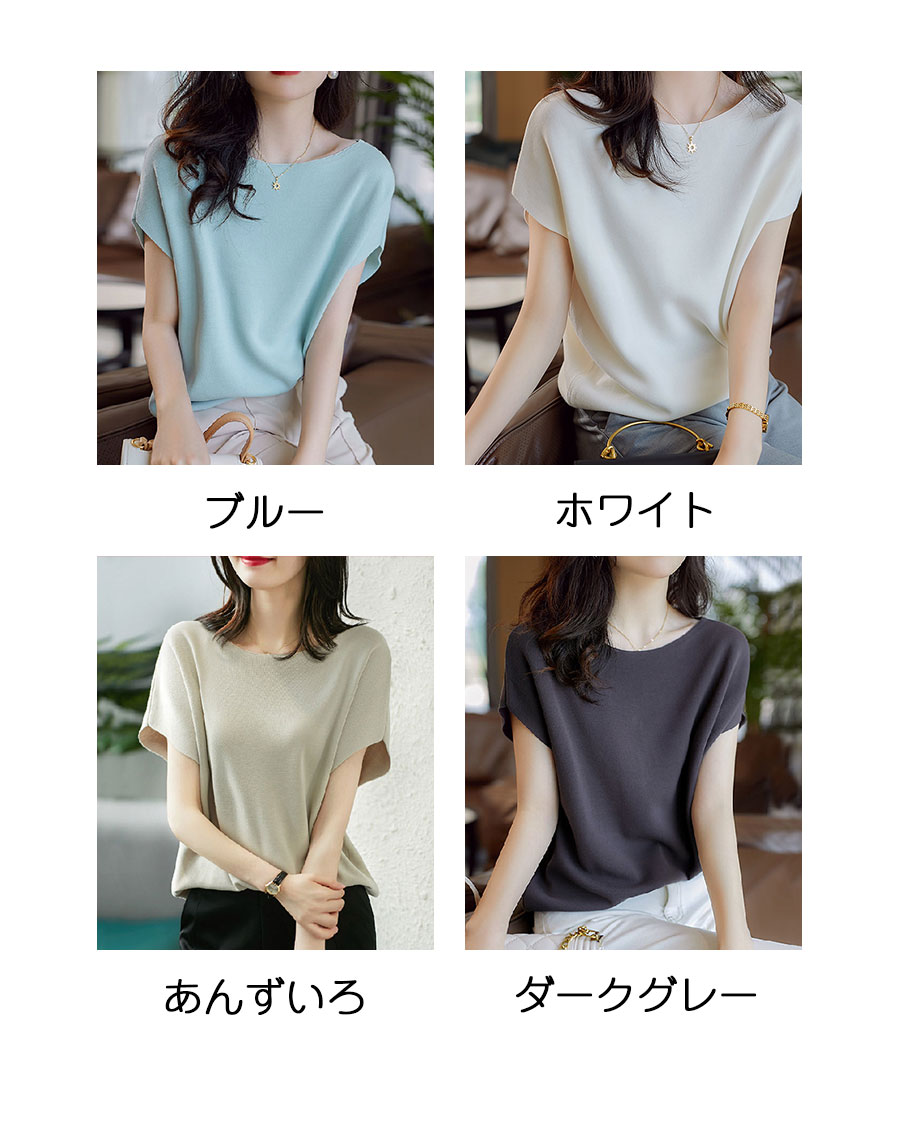 トップス レディース 春夏 半袖 ポン トップス Tシャツ カットソー 人気 プルー ホワイト あんずいろ ダークグレー