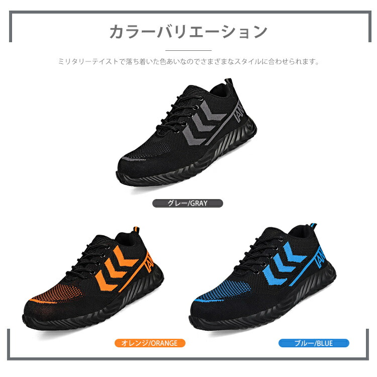 安全靴 ワークブーツ 作業靴 滑らない ブラック ブルー オレンジ 23.0cm(36) 23.5cm(37) 24.0cm(38) 24.5cm(39) 25.0cm(40) 25.5cm(41) 26.0cm(42) 26.5cm(43) 27.0cm(44) 27.5cm(45) 28cm(46)