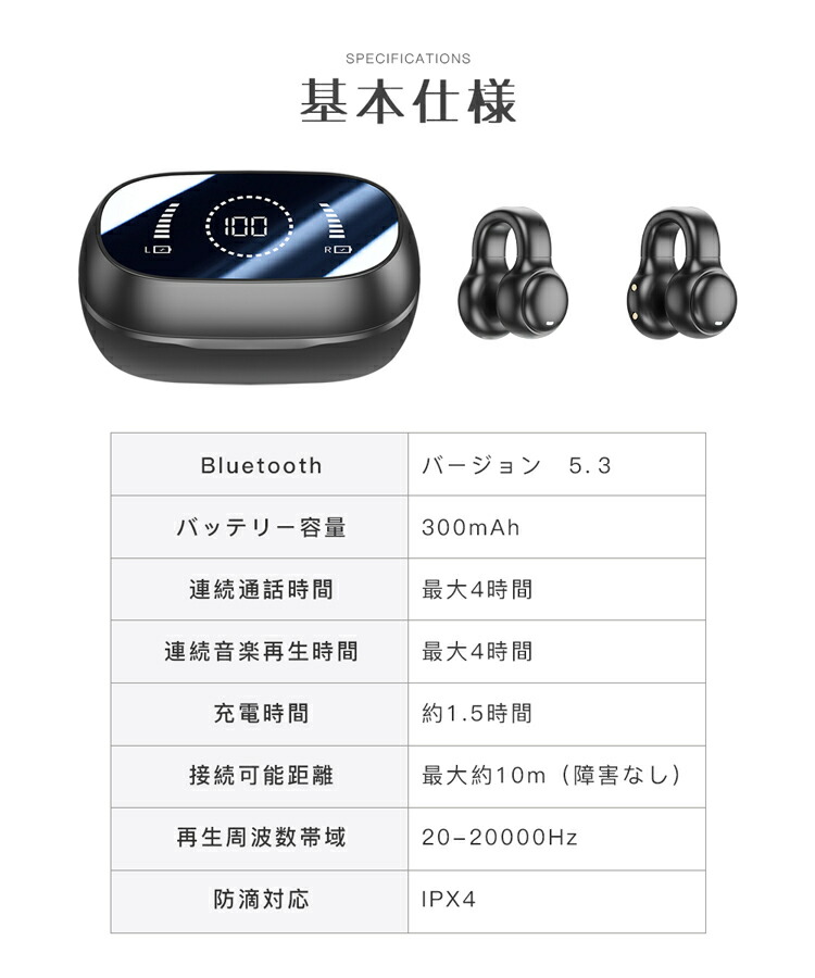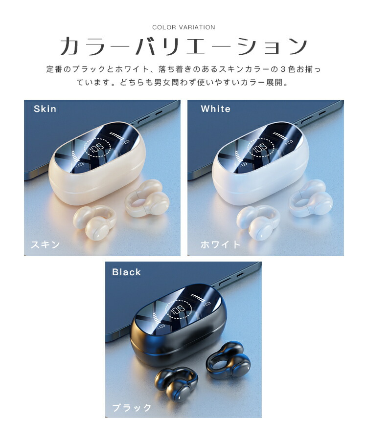 完全ワイヤレス ワイヤレスイヤホン ク ブラック ホワイト ベージュ