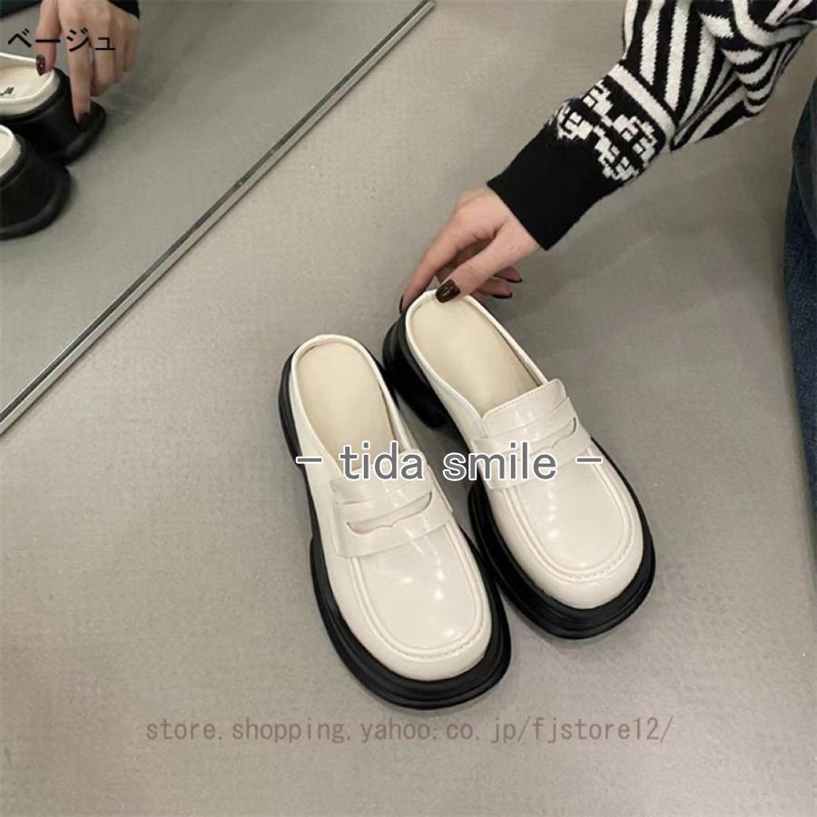 ミュール サンダル ローファー レディ キッズ 靴 サンダル 早い者勝ち ベージュ ブラック ブラック(光沢) 22.5cm 23.0cm 23.5cm 24.0cm 24.5cm 25.0cm 25.5cm 26.0cm
