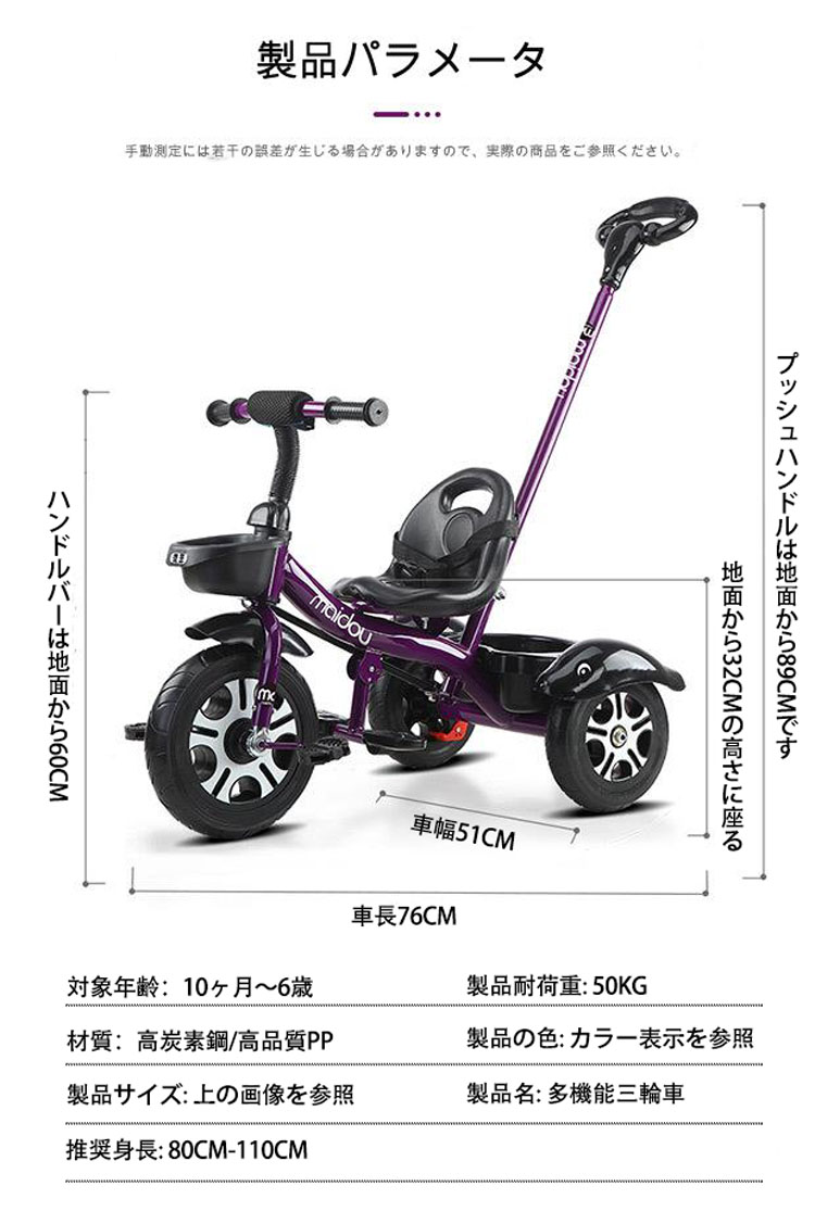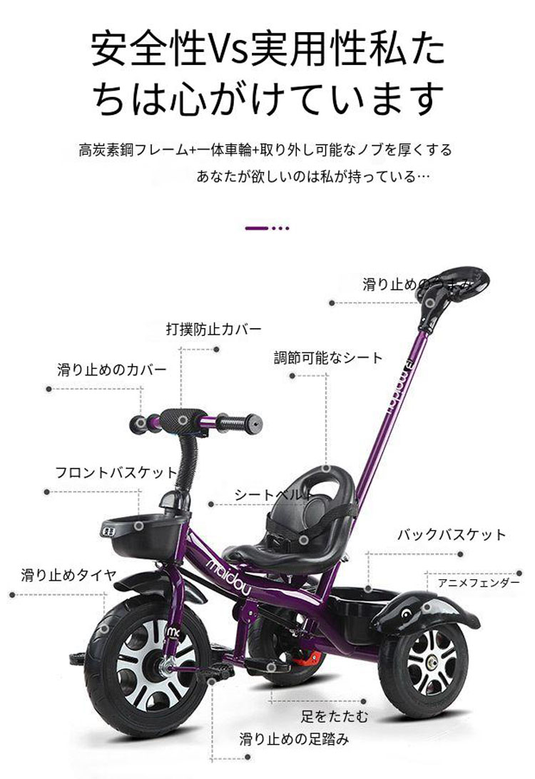 子供用三輪車 1~3~6歳 三輪車のり おもちゃ ゲーム 通販 米の色 ピンク ブルー パープル ホワイト 手押し米色 手押しピンク ハンドプッシュ ブルー 手押しパープル ハンドプッシュホワイト