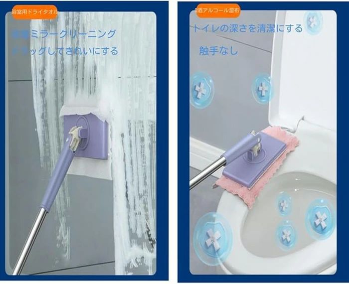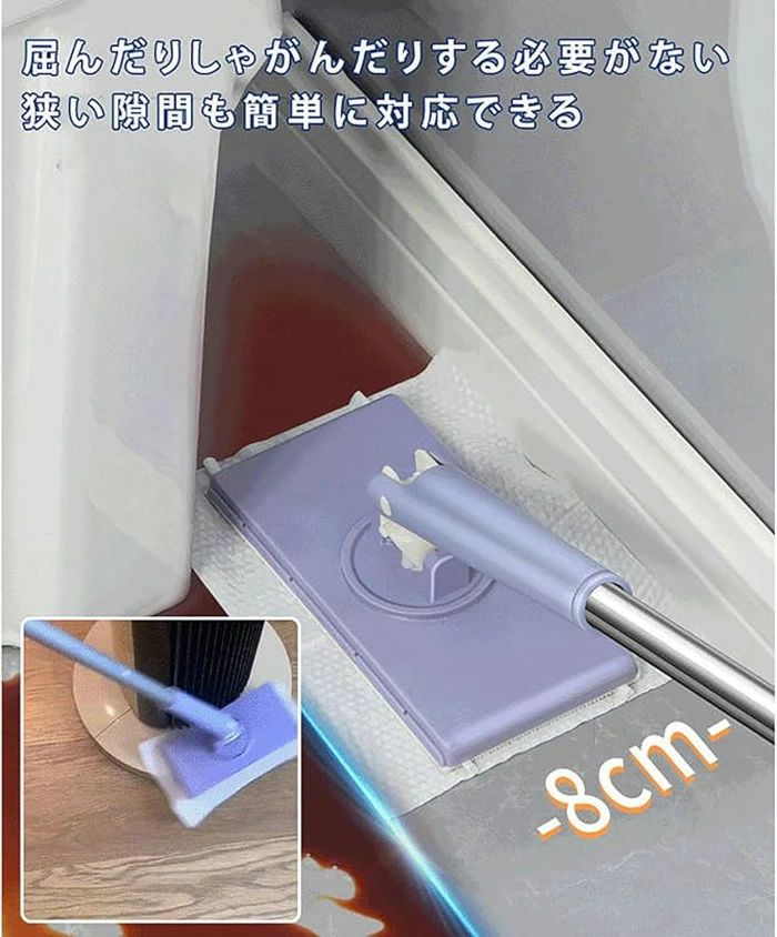 自動で雑巾を挟むモップ、ペーパータオル 掃除用品 モップ 特集 パープル+4枚両面布 ホワイト+4枚両面布 70cm 93cm