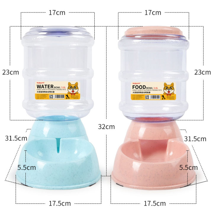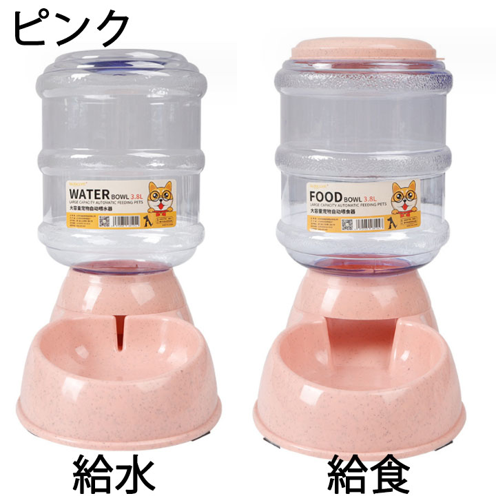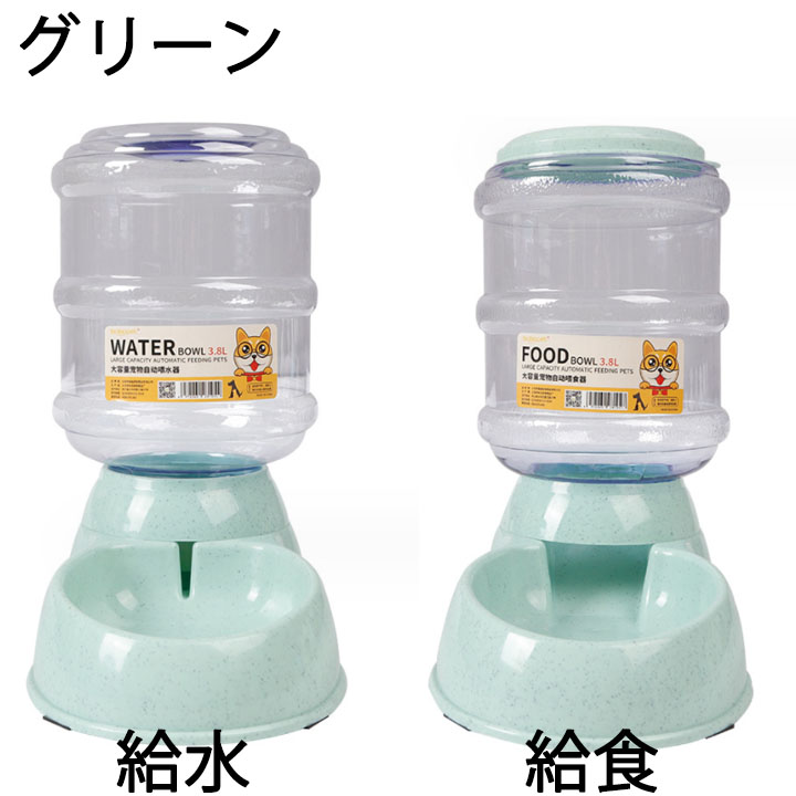 ペットボウル 3.8L 大容量 自動給 給食 給水 ピンク グリーン ブルー グレー