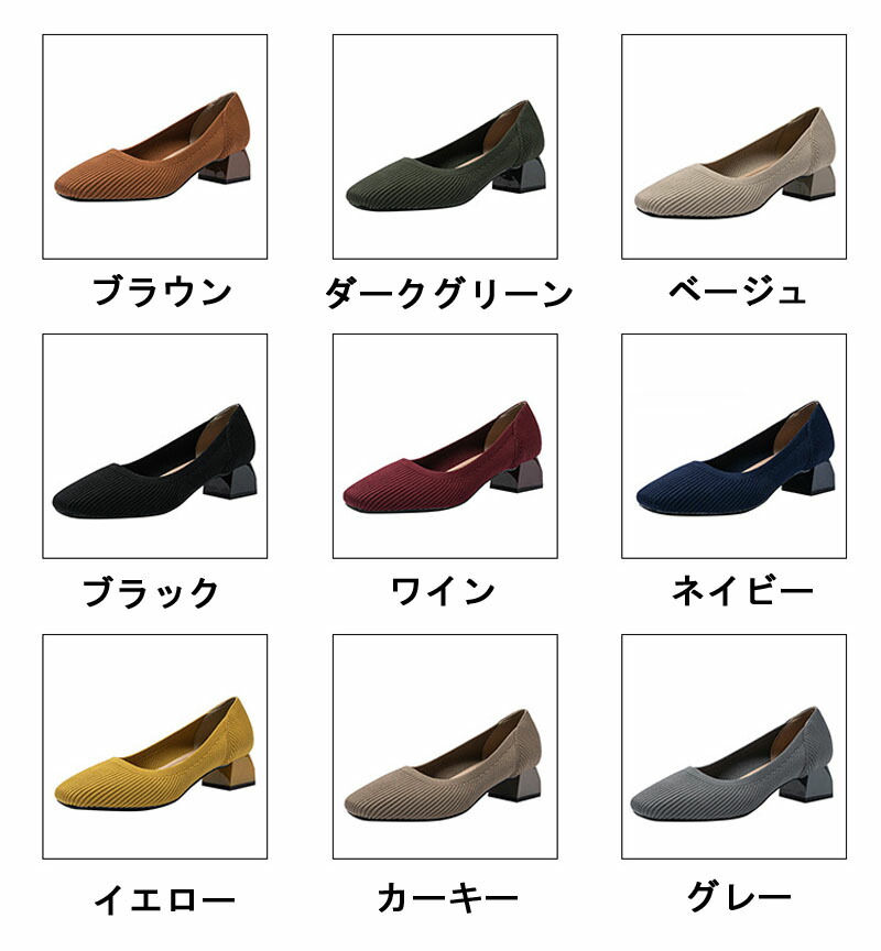 ニットパンプス 靴 パンプス 痛くない 靴 早い者勝ち ブラック カーキー ベージュ グレー ネイビー ブラウン ワイン ダークグリーン イエロー 22.0 22.5 23.0 23.5 24.0 24.5 25.0 25.5 26.0 26.5