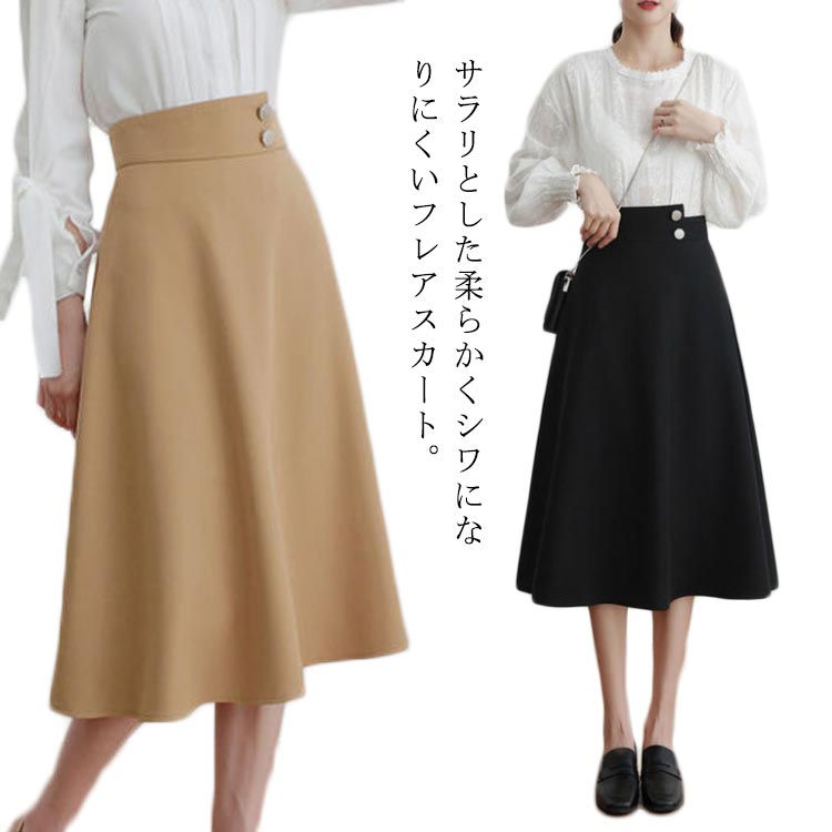 レディース フレアスカート 膝下丈 上 ボトムス スカート 特集 ブラック カーキ S M L XL 2XL 3XL
