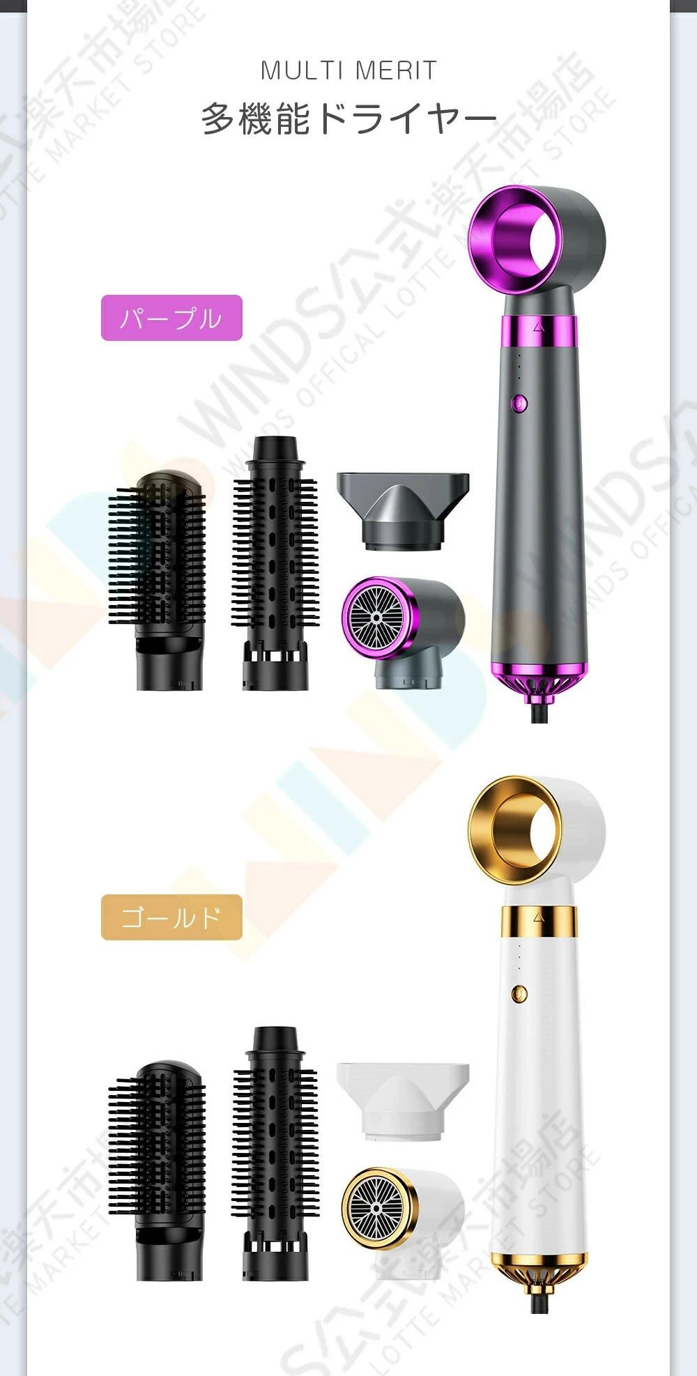 5IN1 ドライヤー 大風量 速乾 ノ ゴールデン パープル