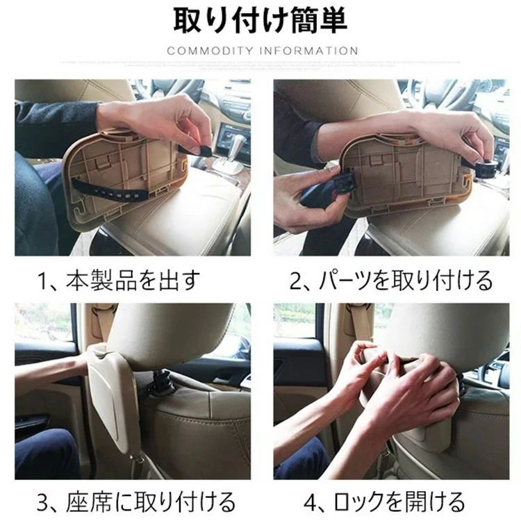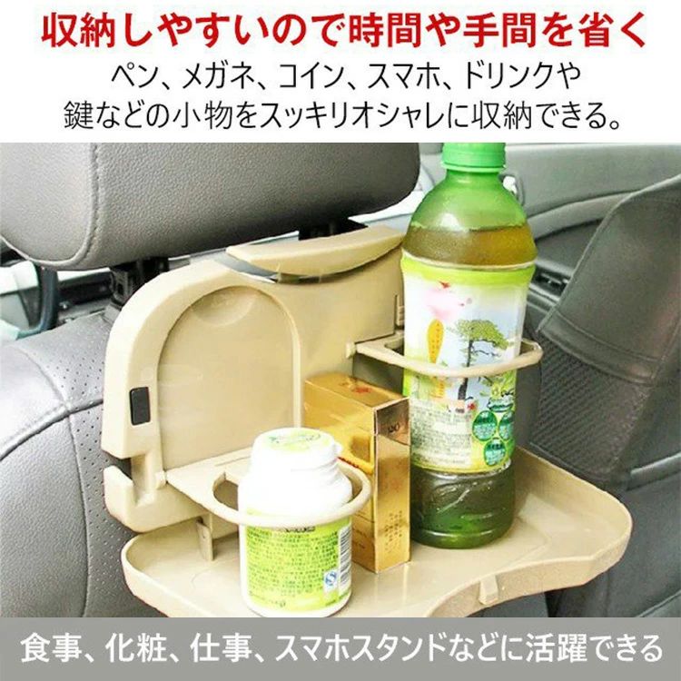 リアシートーブル カップホルダー収納 ブラック ベージュ グレー