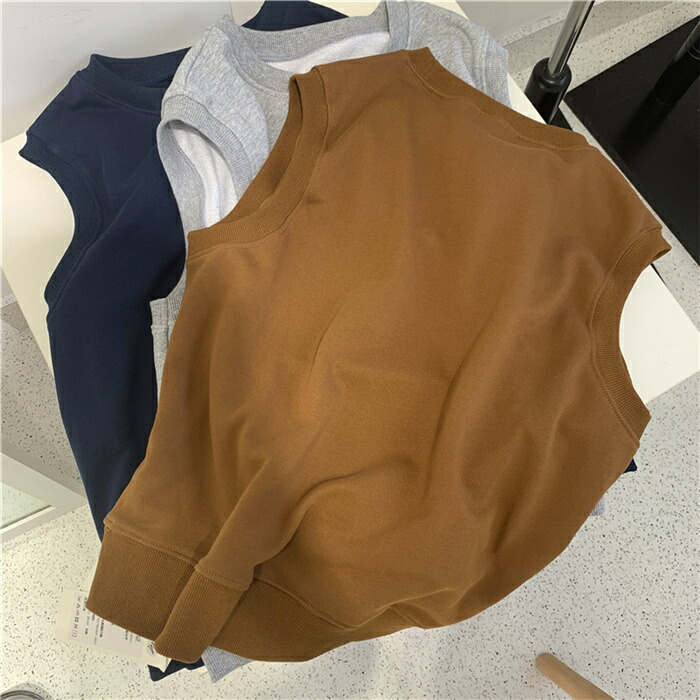 クーポンで2480円 ベスト スウェッ レディースファッション 早い者勝ち 紺色 グレー ダークキャラメル M L