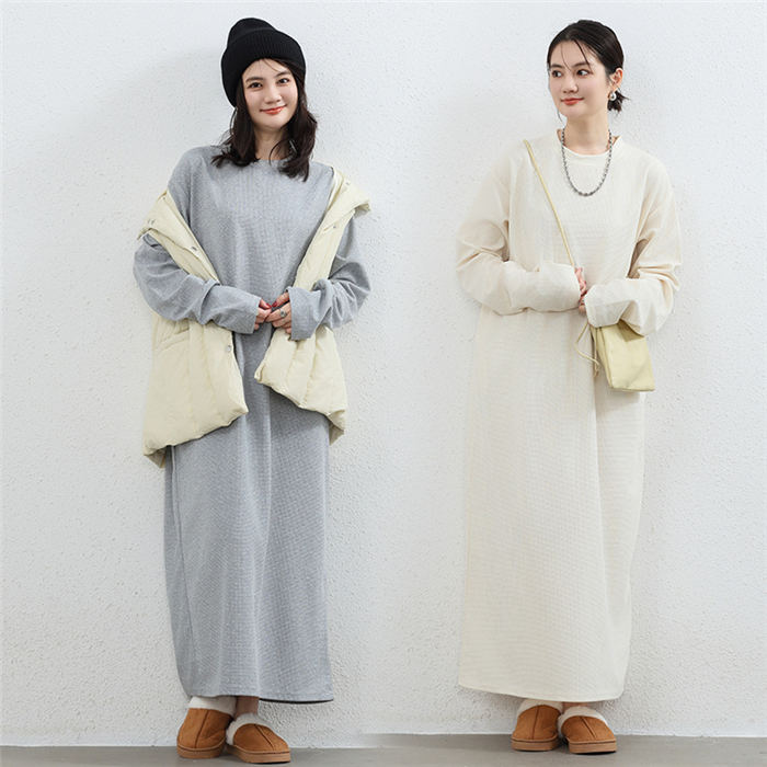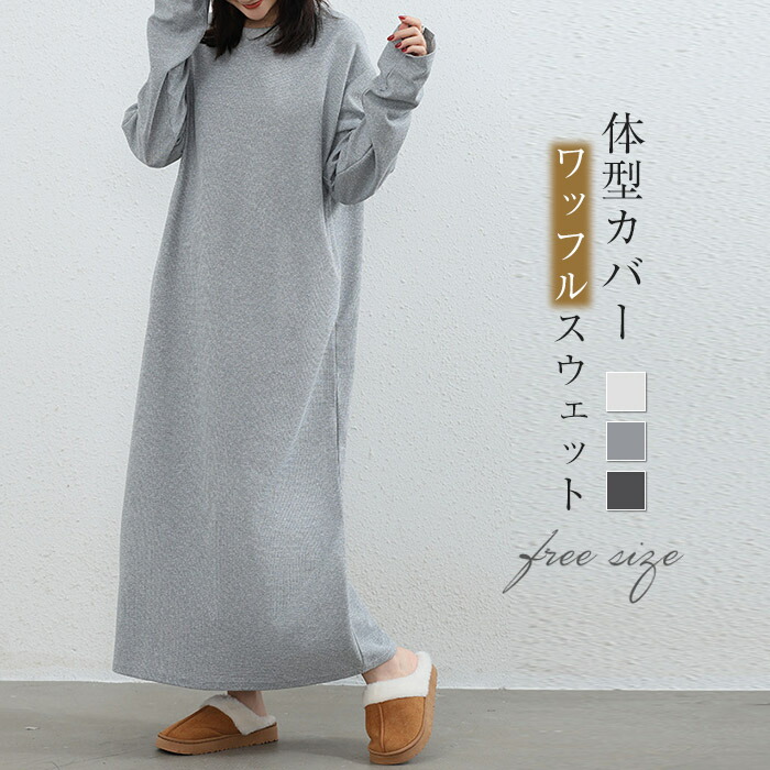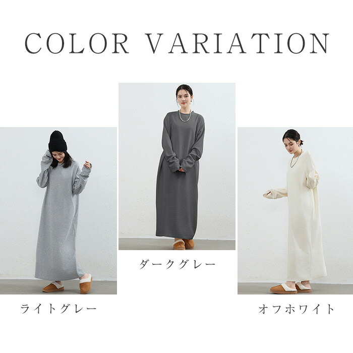 スウェットワンピース ワッフル レディ レディースファッション 新登場! オフホワイト ライトグレー ダークグレー