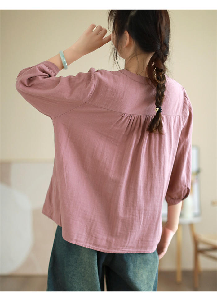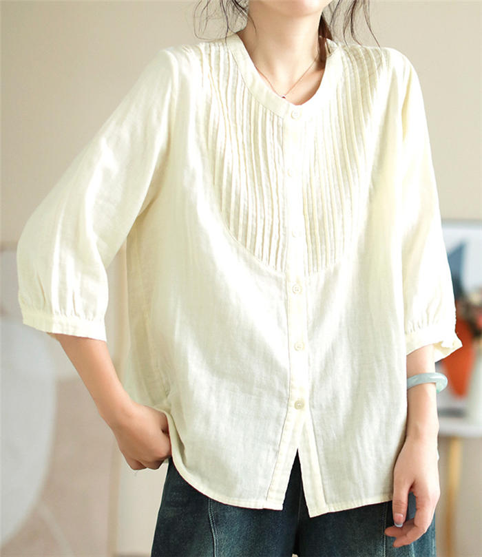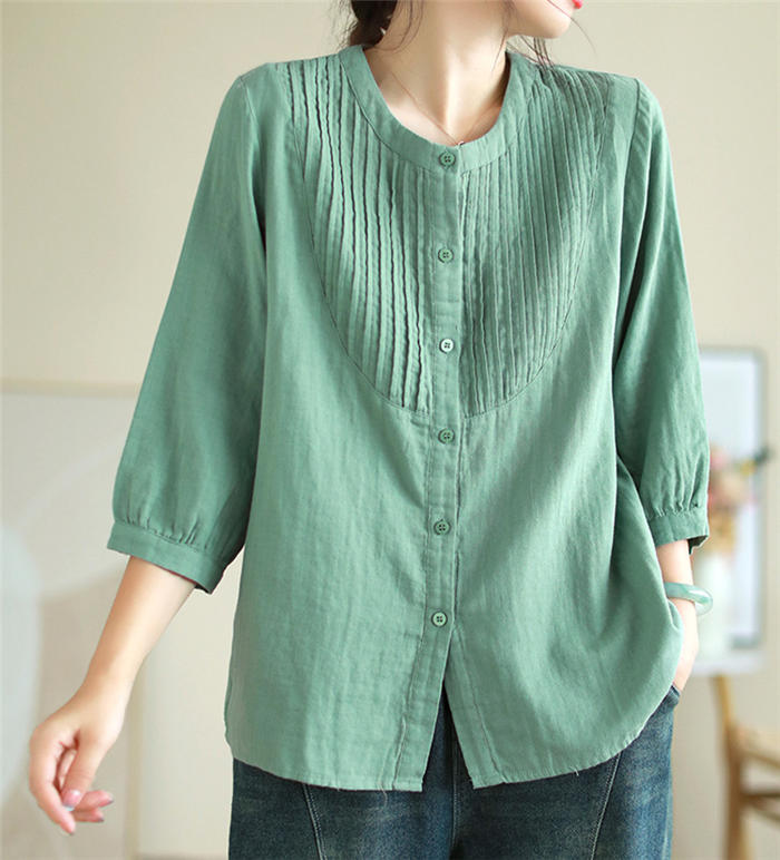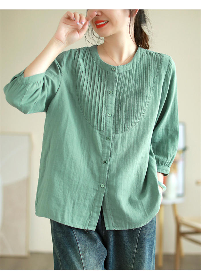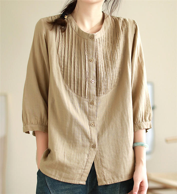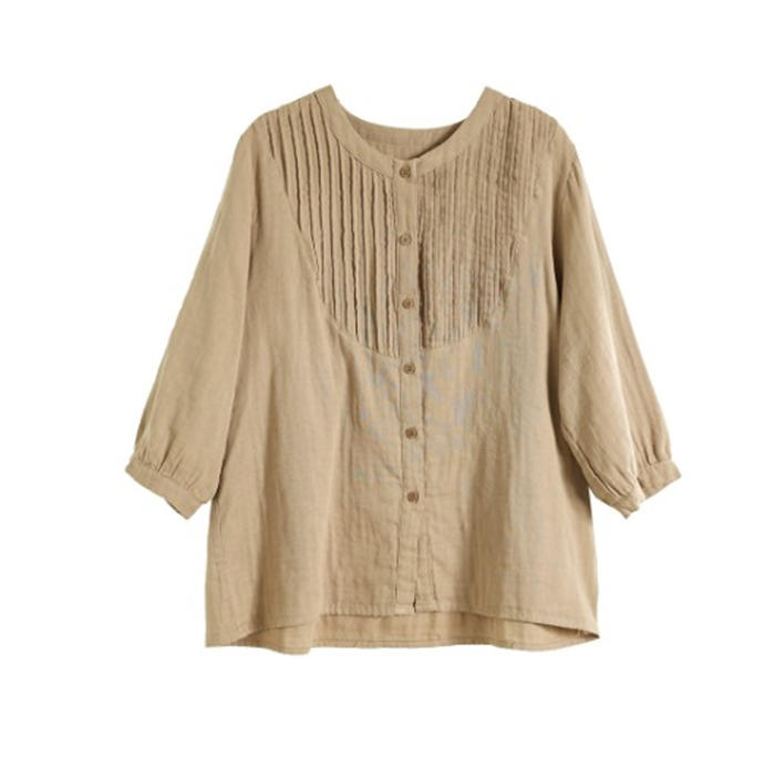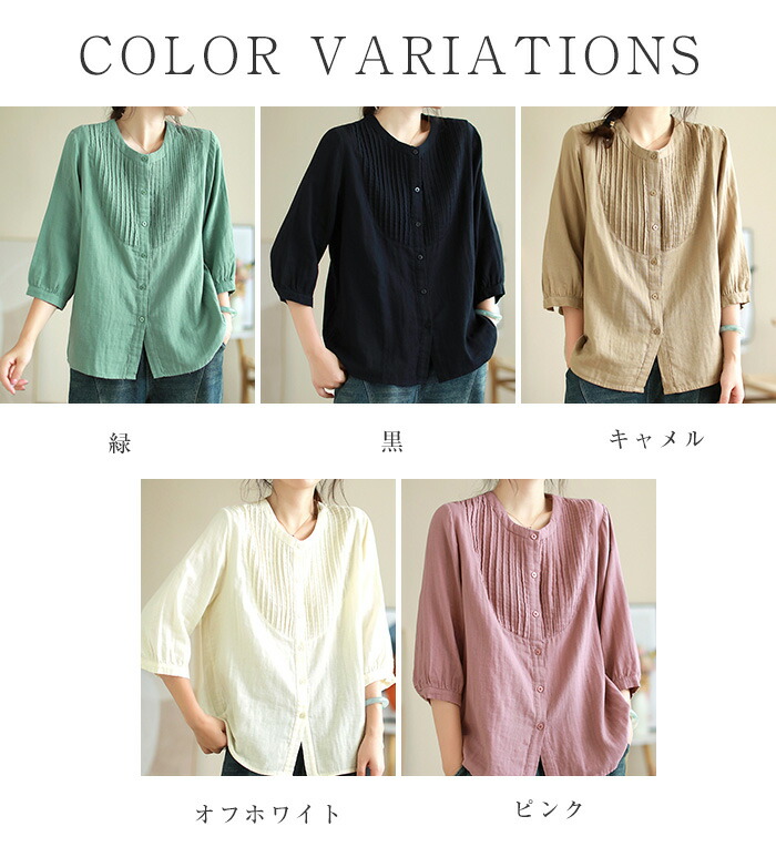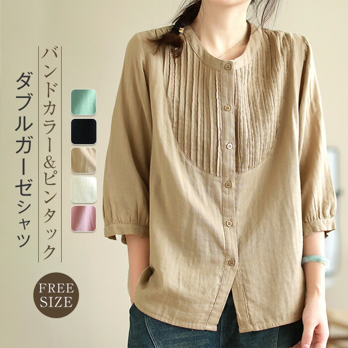 ガーゼ シャツ レディース 七分袖 春 レディースファッション 新登場! オフホワイト ピンク キャメル 黒 緑
