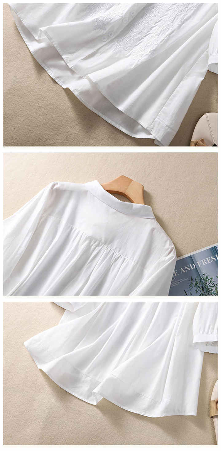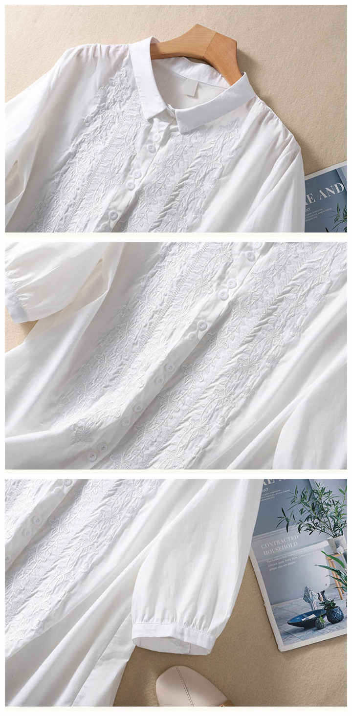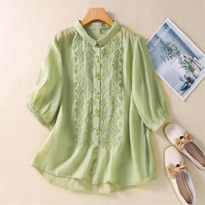 丸襟 シャツ 7分袖 レディース 刺繍 トップス シャツ ブラウス 新登場! 白 グリーン グレー レッド 黒 M L XL 2XL