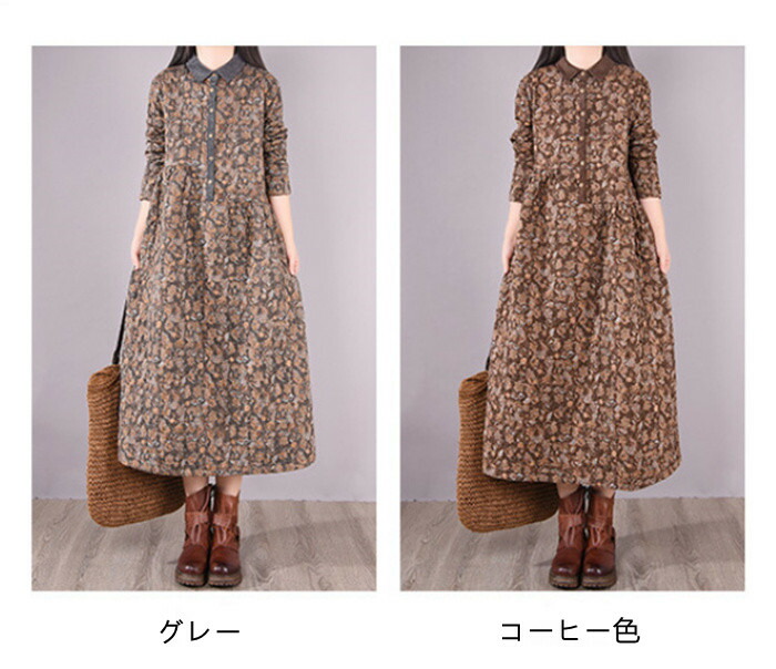 キルティング ワンピース 長袖 40代 ワンピース 新登場! グレー コーヒー色 M L XL XXL