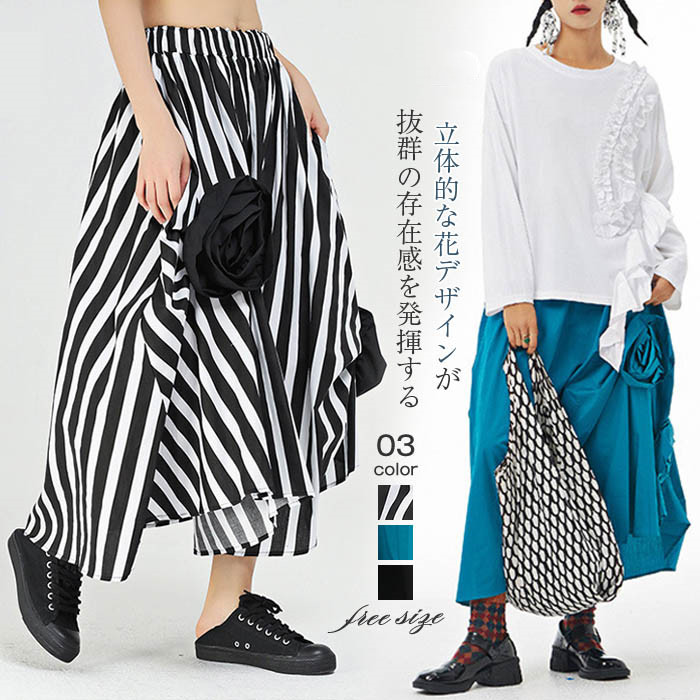 アシンメトリー スカート レディース レディースファッション 人気 黒無地 ブルー無地 黒白ボーダー