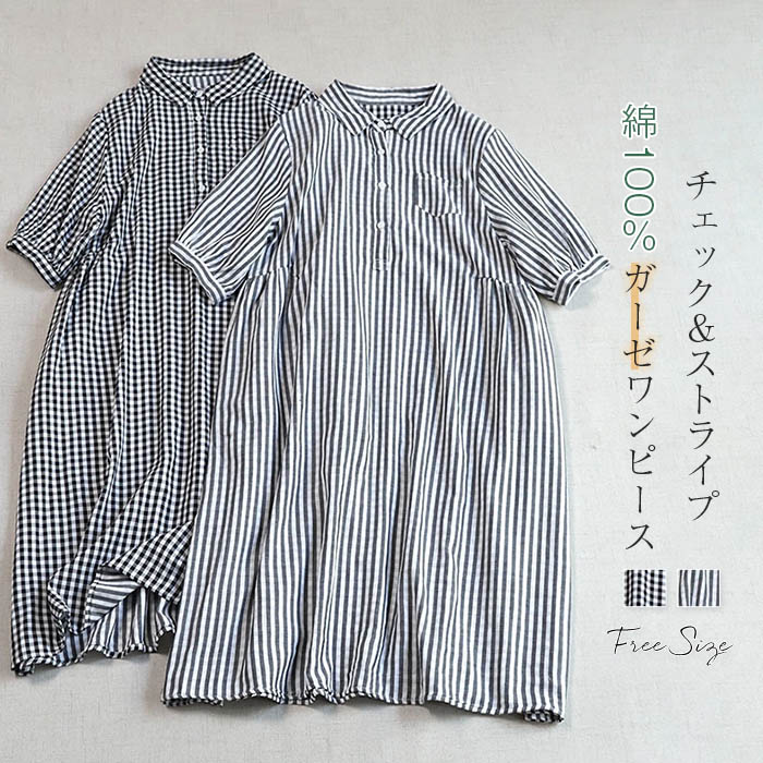 ガーゼ ワンピース レディース シャツ レディースファッション 新登場! チェック ストライプ
