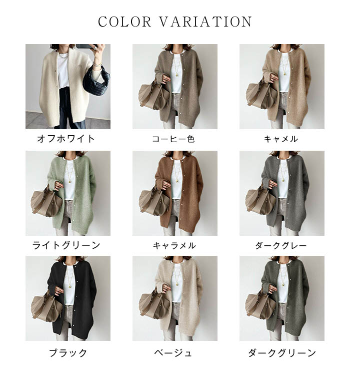 ノーカラー ニットカーディガン レディ コート ジャケット 早い者勝ち オフホワイト コーヒー色 キャメル ライトグリーン キャラメル ダークグレー ブラック ベージュ ダークグリーン S M L XL 2XL