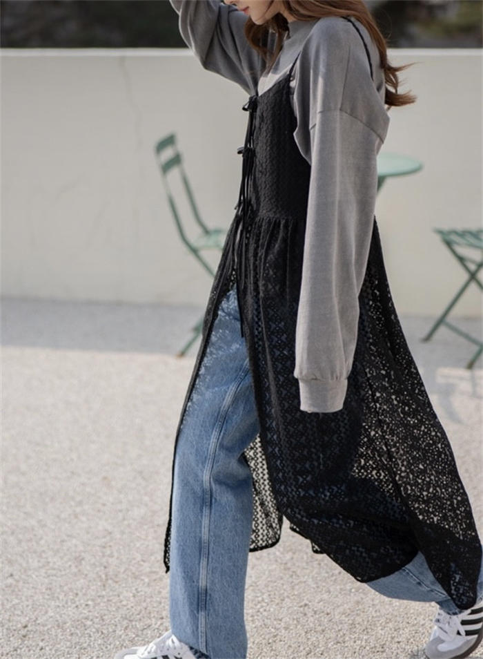 レイヤード レース キャミワンピース レディースファッション 続々登場 オフホワイト ブラック