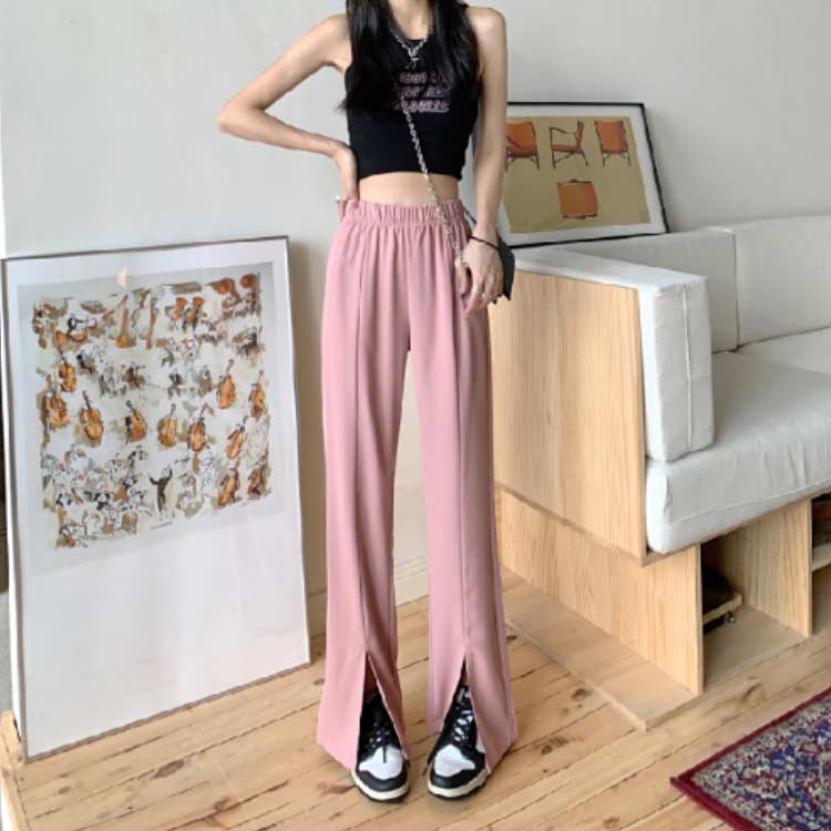 センタースリット パンツ ウエストゴム ボトムス パンツ 超目玉商品 ブラック ピンク ブルー ブラウン ベージュ S M L XL 2XL