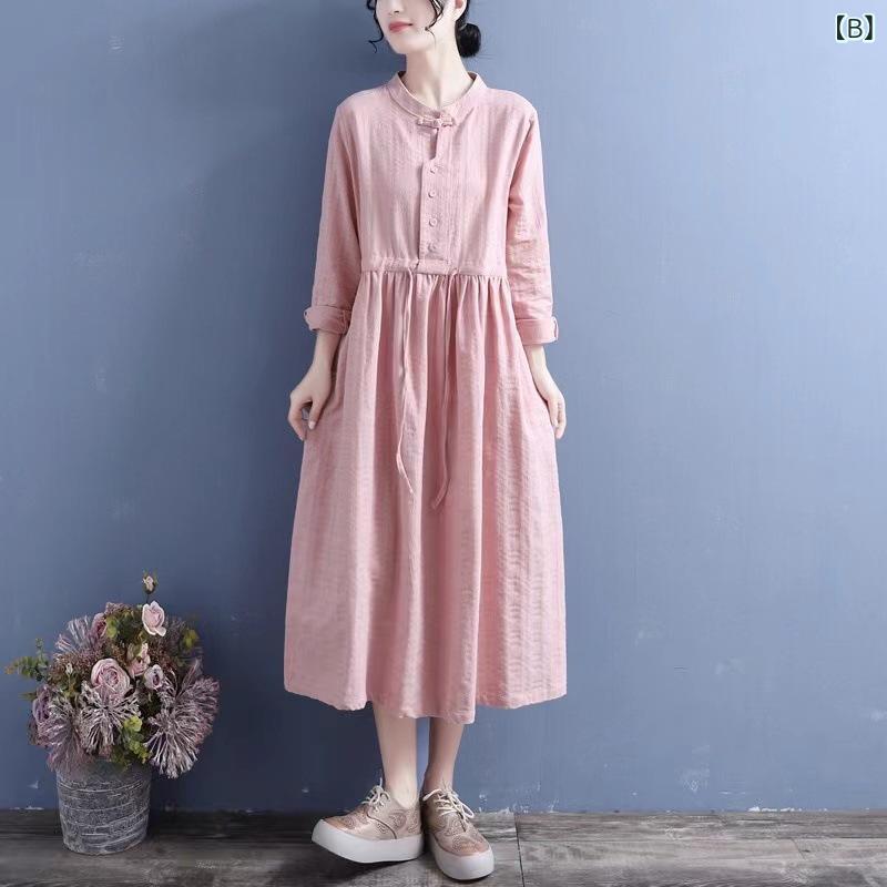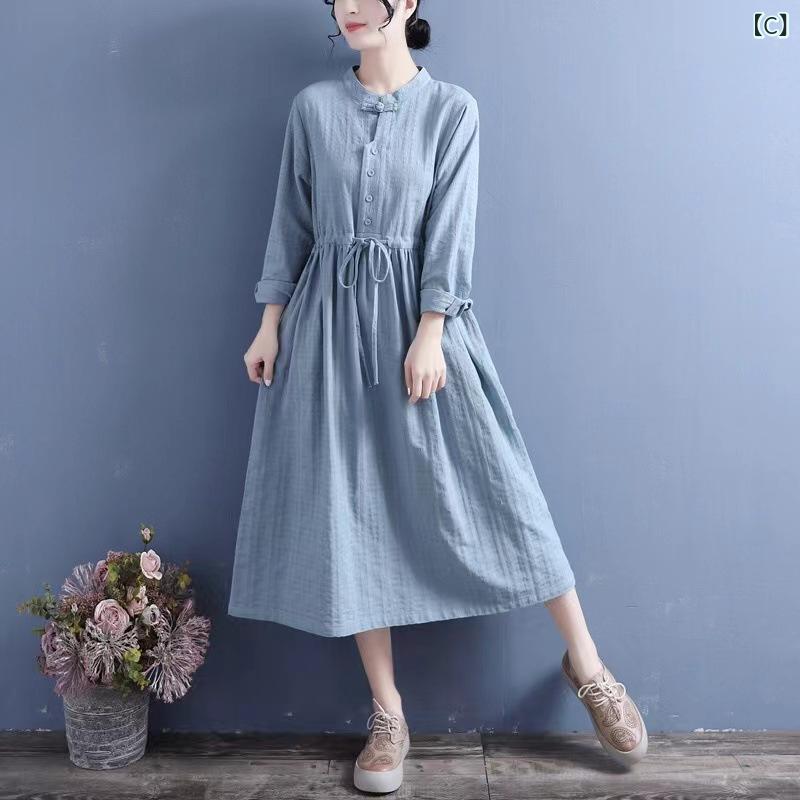 ワンピース レディース ロング丈 長袖 レディースファッション 続々登場 A:白 B:ピンク C:ブルー M L XL 2XL