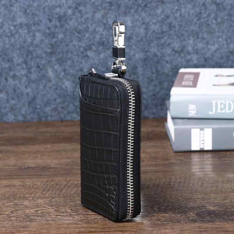 キーケース ユニセックス 男女兼用 クロコダイル柄 ワニ革風 エンボス加工 フェイクレザー PUレザー グレージュ マット 鍵入れ キーポーチ キーホルダー キーリング 大容量 コンパクト 実 多機能