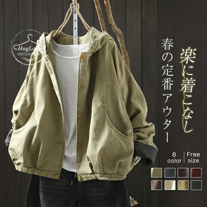 春 フードジャケット レディース アウター フード付き ブルゾン トップス 前開き パーカー スプリングジャケット 軽量 大きいサイズ ゆったり 体型カバー カジュアル 通勤 カジュア 防風