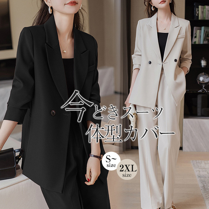 今どきスーツ体型カバーパンツスーツ。