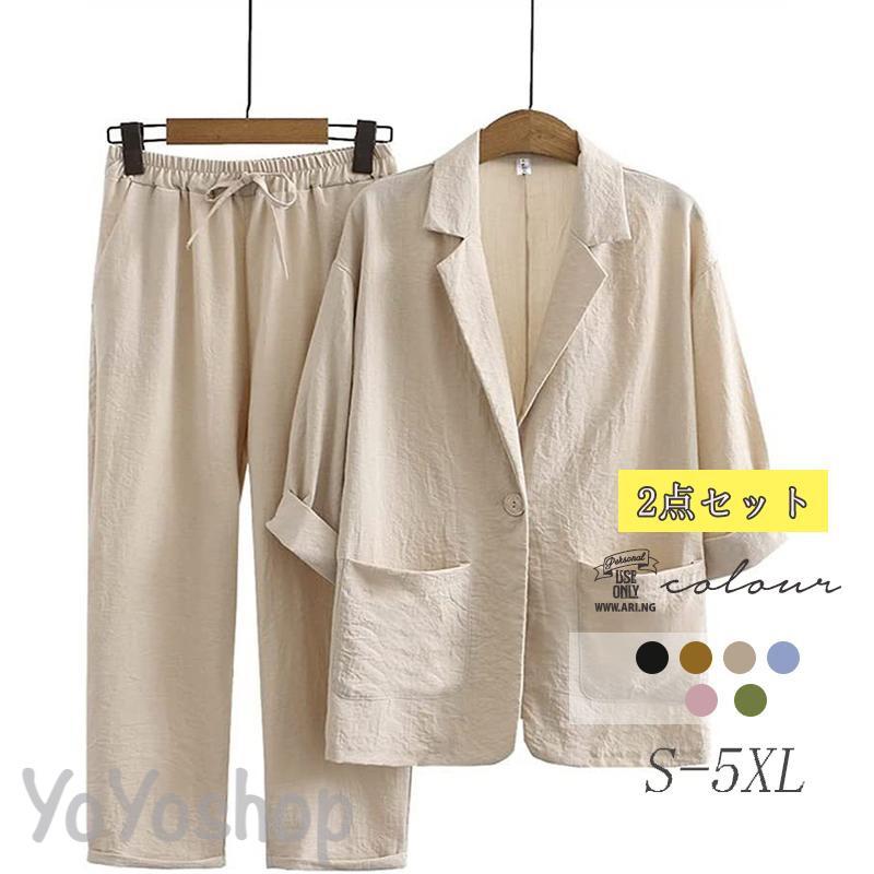 テーラードジャケット レディース 綿麻 2点セットリネン 春服 夏服 通勤 薄手 ビジネス サマージャケット フォーマル 卒業式 面接 スーツジャケット